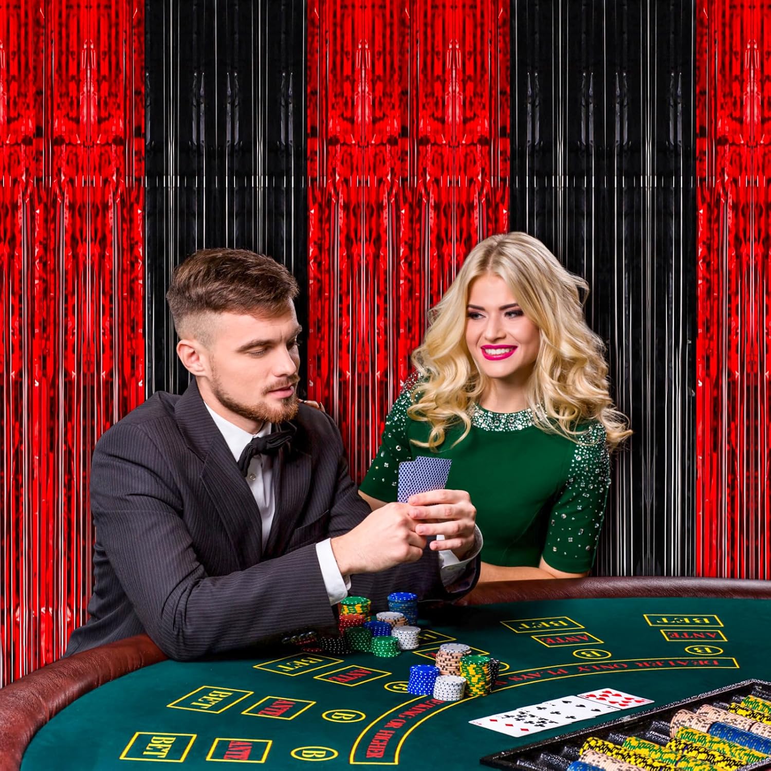• Premium Material: This Red and Black foil curtain backdrop is made of stable tinsel, non-fading, stay shiny and reusable. Unfold it and then enjoy your glittering party