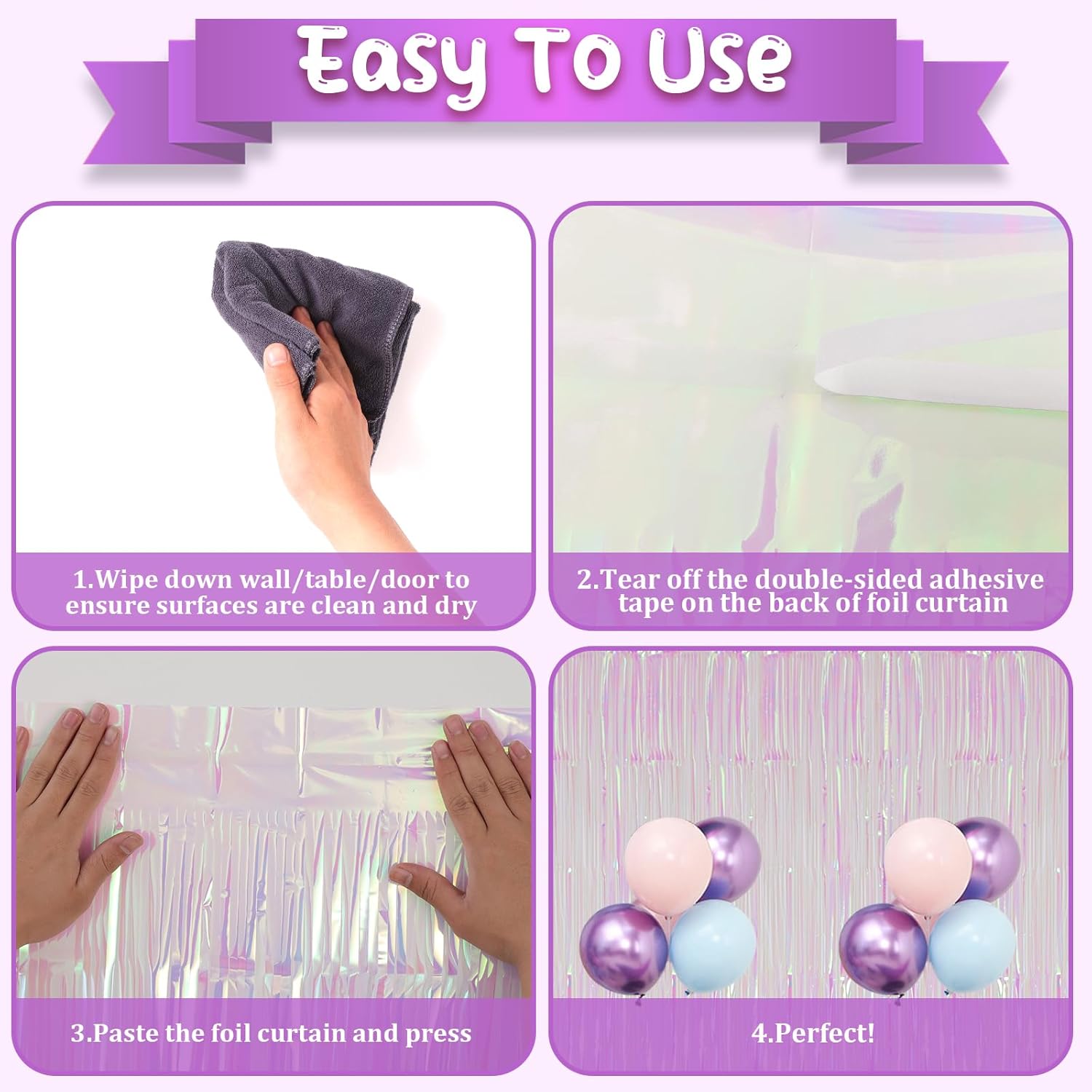 • Premium Material: This Iridescent transparent foil curtain backdrop is made of stable tinsel, non-fading, stay shiny and reusable. Unfold it and then enjoy your glittering party