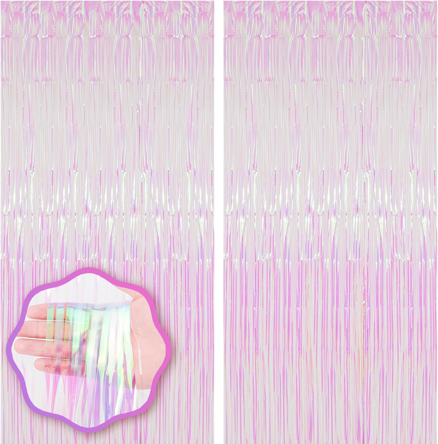 2 Pack Iridescent Transparent Foil Fringe Backdrop Curtains, Tinsel Streamers Birthday Party Decorations, Fringe Backdrop for Graduation, Baby Shower, Gender Reveal, Disco Party