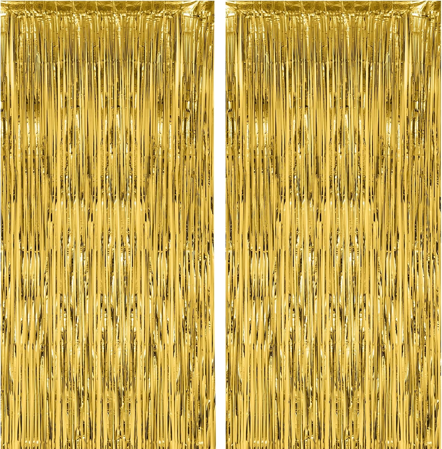 2 Pack Gold Foil Fringe Backdrop Curtains, Tinsel Streamers Birthday Party Decorations, Fringe Backdrop for Graduation, Baby Shower, Gender Reveal, Disco Party