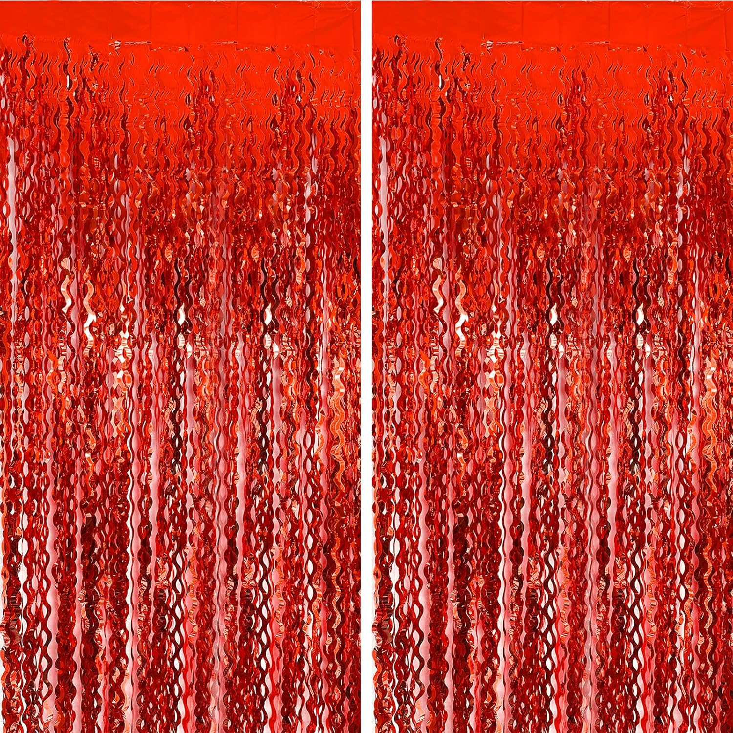 Red Door Streamers Party Backdrop Foil Curtains, Ruby Wall Decor, Carnival Decorations, Casino Theme Parties Decorations, Birthday Decorations, Red Graduation Decorations, Bachelorette Party Supplies