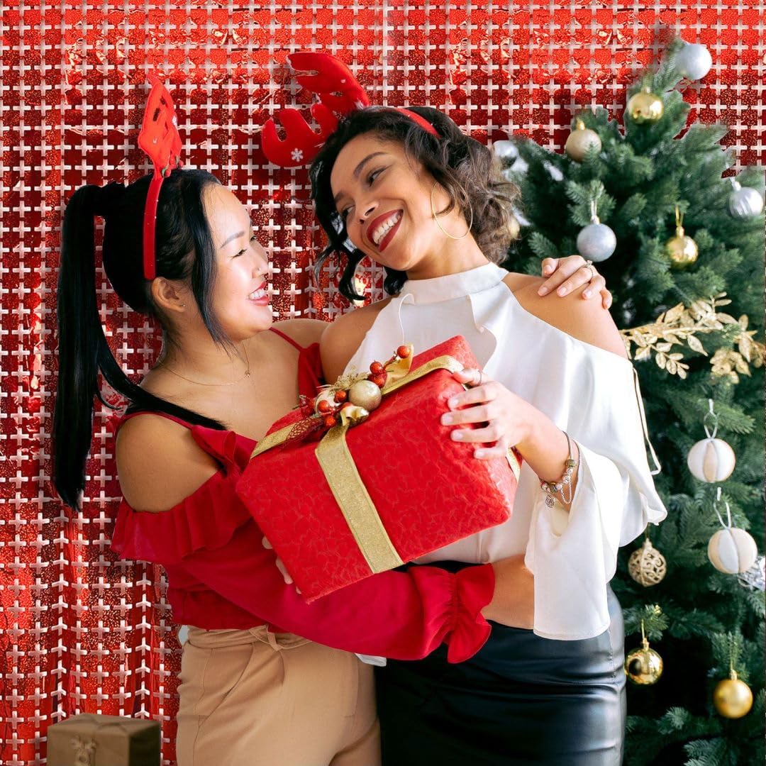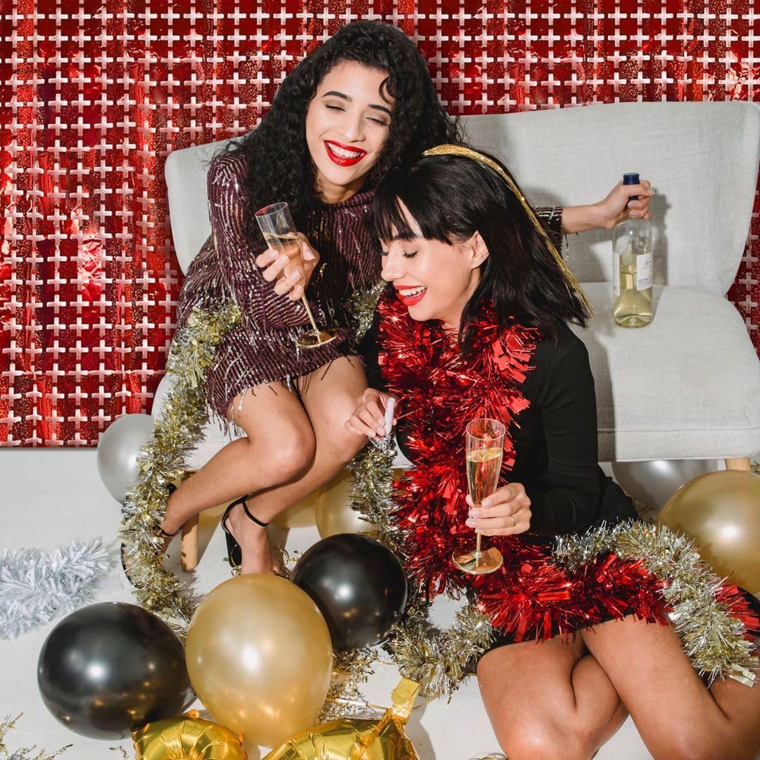 2 Pack Red Square Tinsel Party Backdrop Christmas Decorations Foil Fringe Backdrop Curtains Carnival Casino Theme Birthday New Year Holiday Celebration Bachelorette Party Decorations Supplies