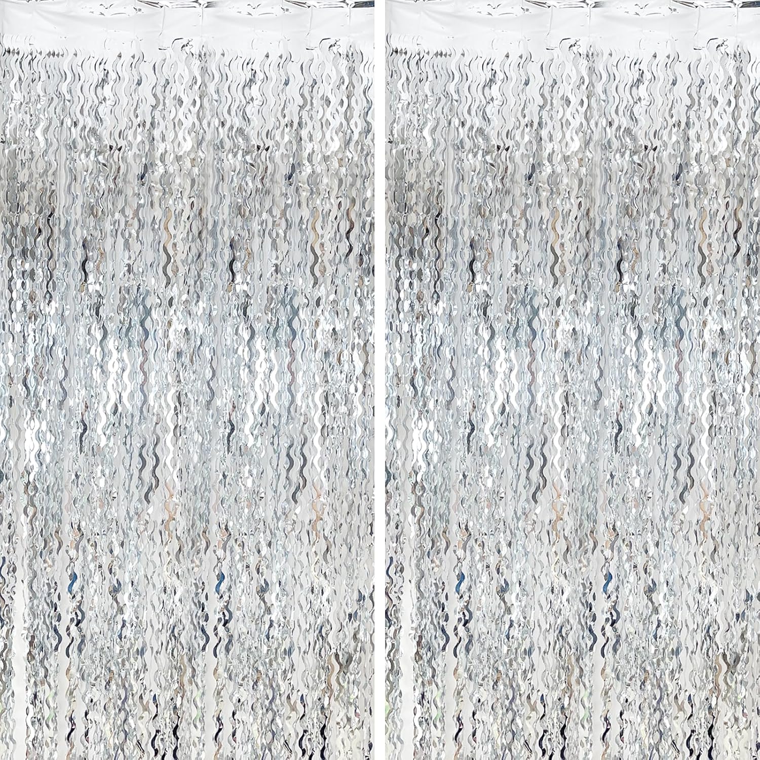 • Silver Photo Booth - The wavy foil fringe curtain with sparkle, a stunning decorative piece that will add a touch of glamour and elegance to your party decorations.