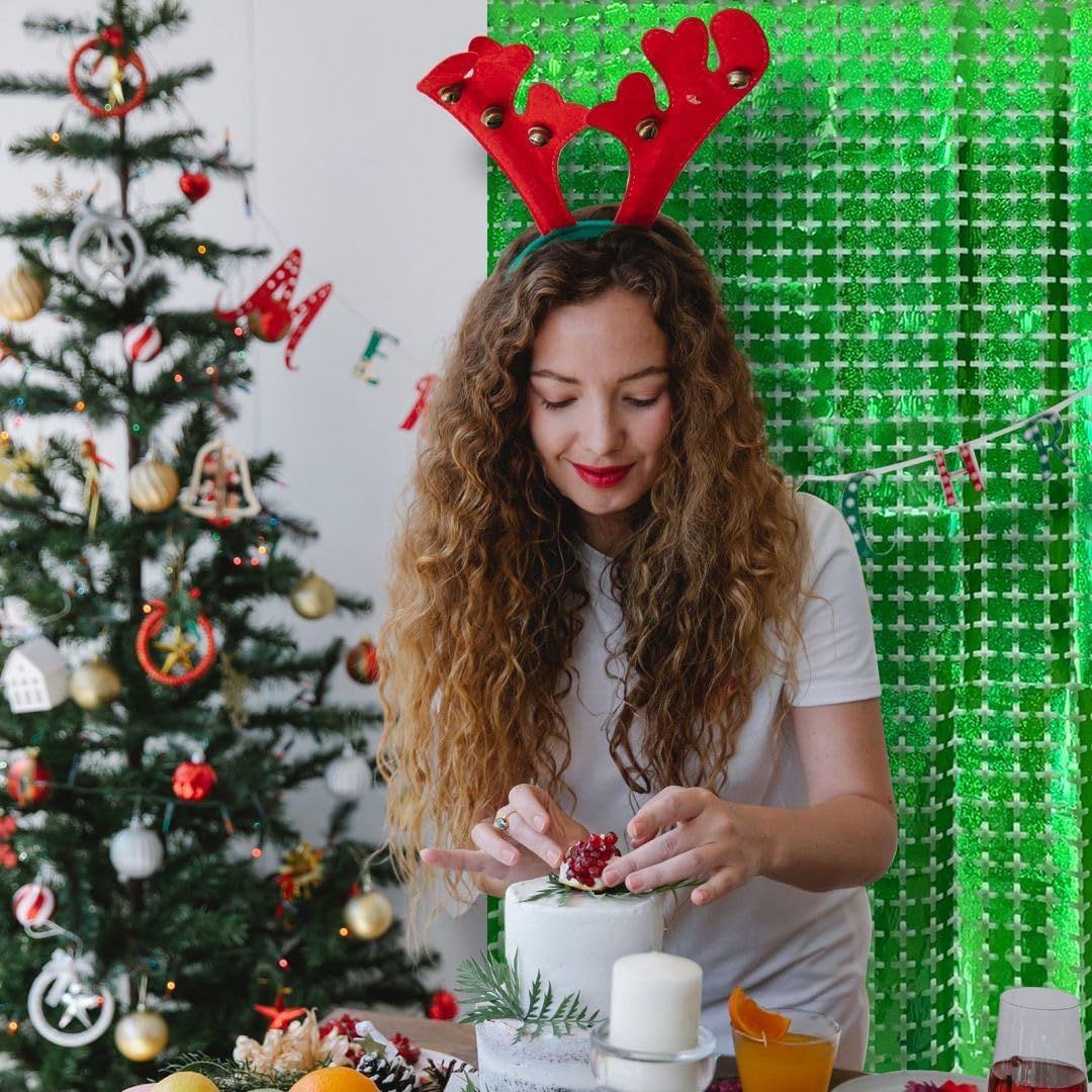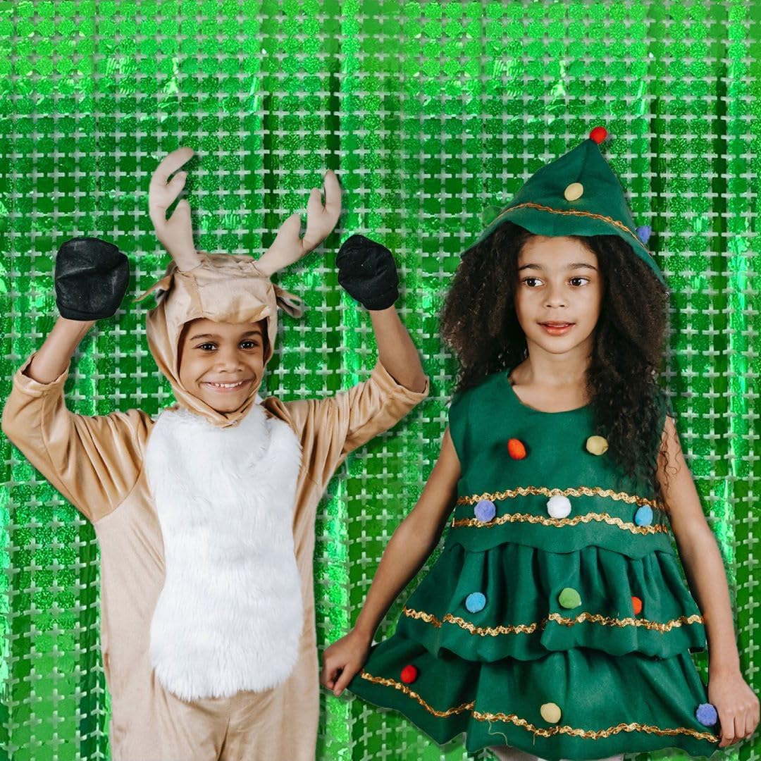 Square Tinsel Curtain Party Backdrop - 5pcs Glitter Foil Fringe Curtain Party Decor Green Photo Booth Backdrop Streamers for Halloween, Christmas, Birthday, Graduation, Wedding Party Decorations