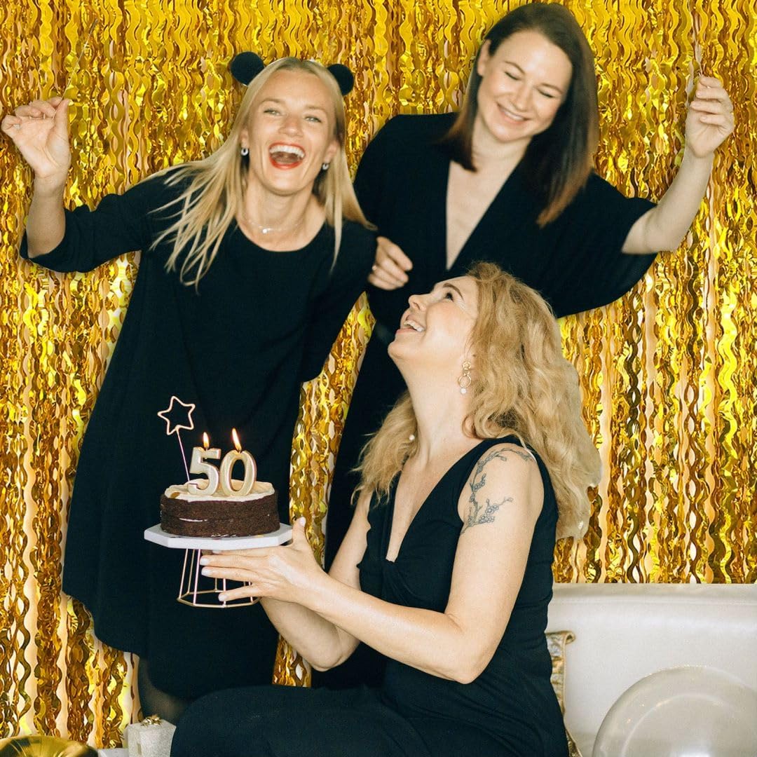 • 【Gold Photo Backdrop】The wavy foil fringe curtain with sparkle, a stunning decorative piece that will add a touch of glamour and elegance to your party decorations.
