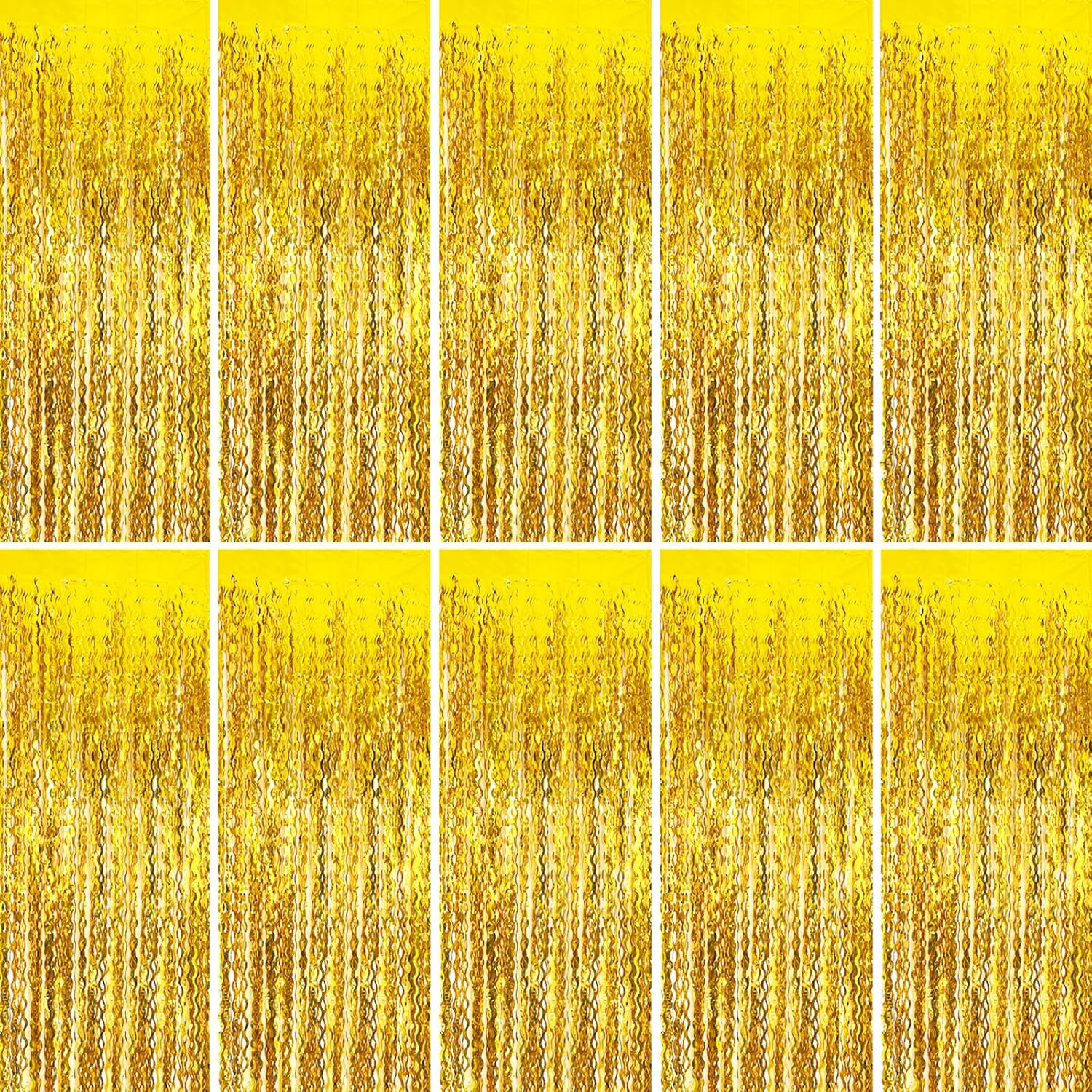 Gold Foil Fringe Backdrop Curtain Wave Golden Streamers Tinsel Photo Backdrop Gold Party Decorations for Anniversary, Birthday, Halloween, Masquerade, Graduation, New Years Eve, Bachelor Party