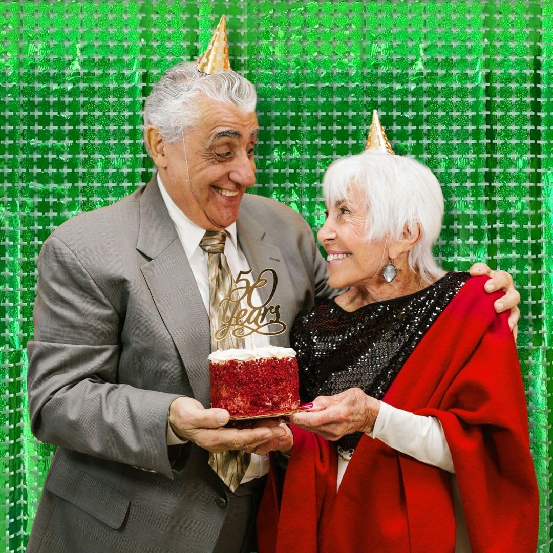 Square Tinsel Curtain Party Backdrop - 10pcs Glitter Foil Fringe Curtain Party Decor Green Photo Booth Backdrop Streamers for Halloween, Christmas, Birthday, Graduation, Wedding Party Decorations