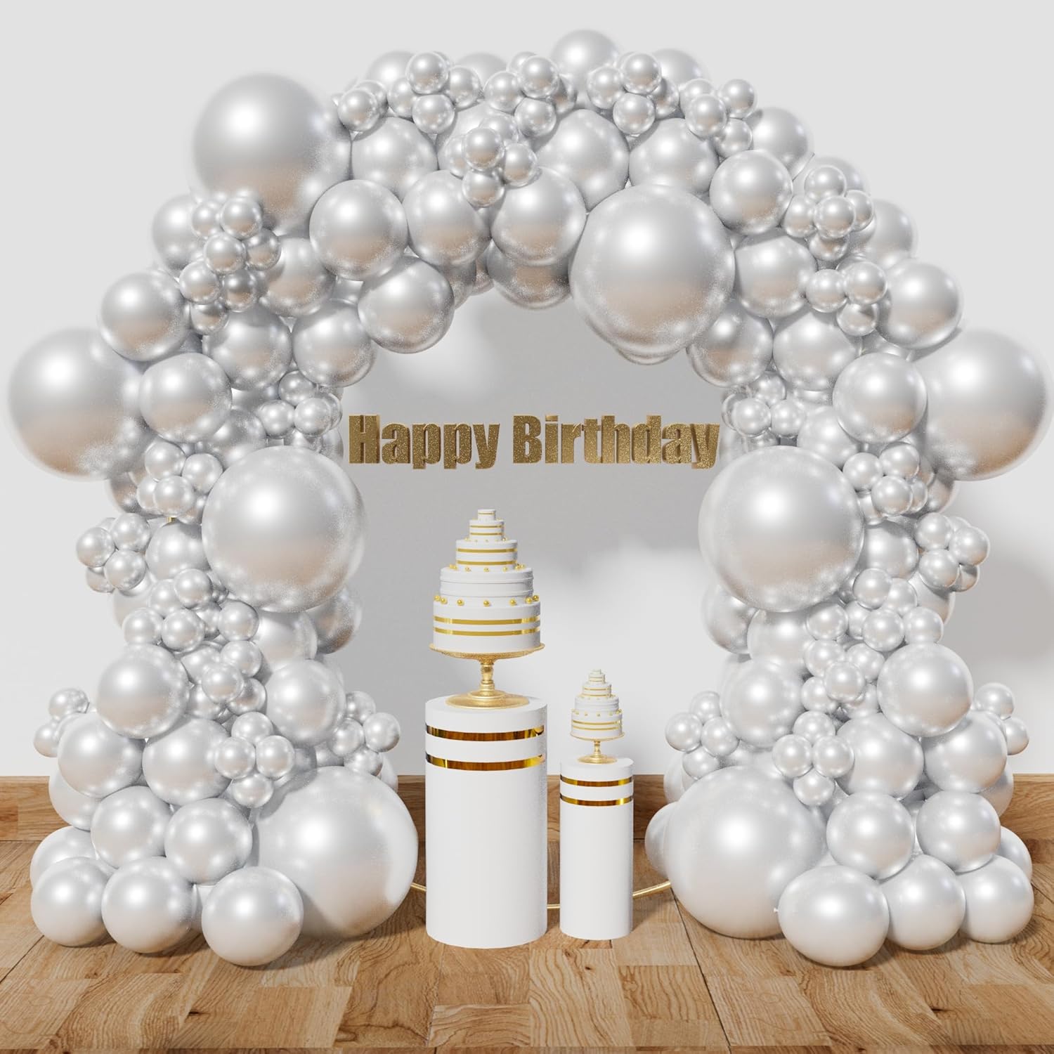 KAWKALSH Pearl White Balloon Arch Kit 111Pcs 18 12 5 Inch Latex Party Balloons Garland for Birthday Baby Shower Wedding Engagement Anniversary Christmas Party Decorations