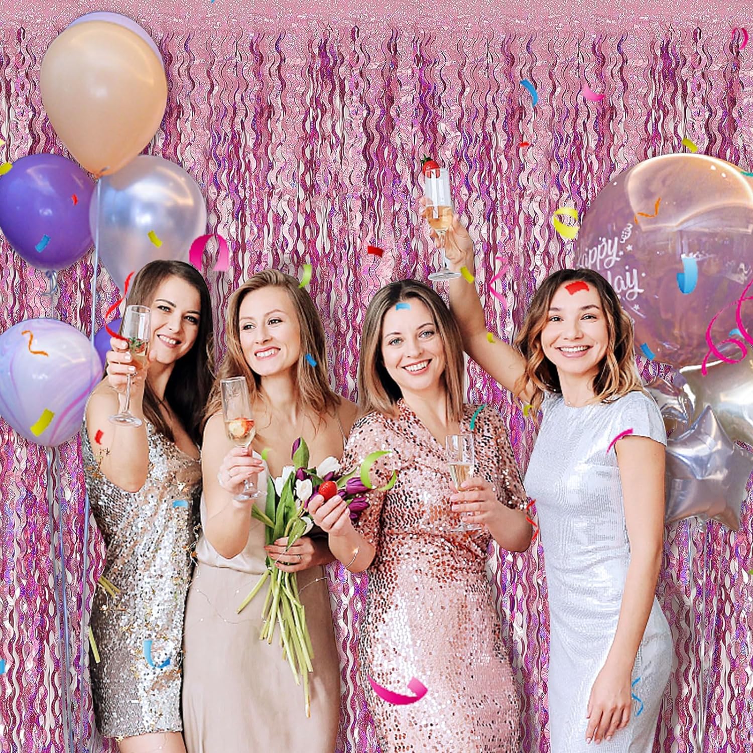 Pink Streamers Fringe Backdrop Tinsel Foil Fringe Curtains Wavy Backdrop for Parties Sparkle Metallic Wavy Foil Fringe Backdrop Curtain Photo Booth Props for Birthday Wedding