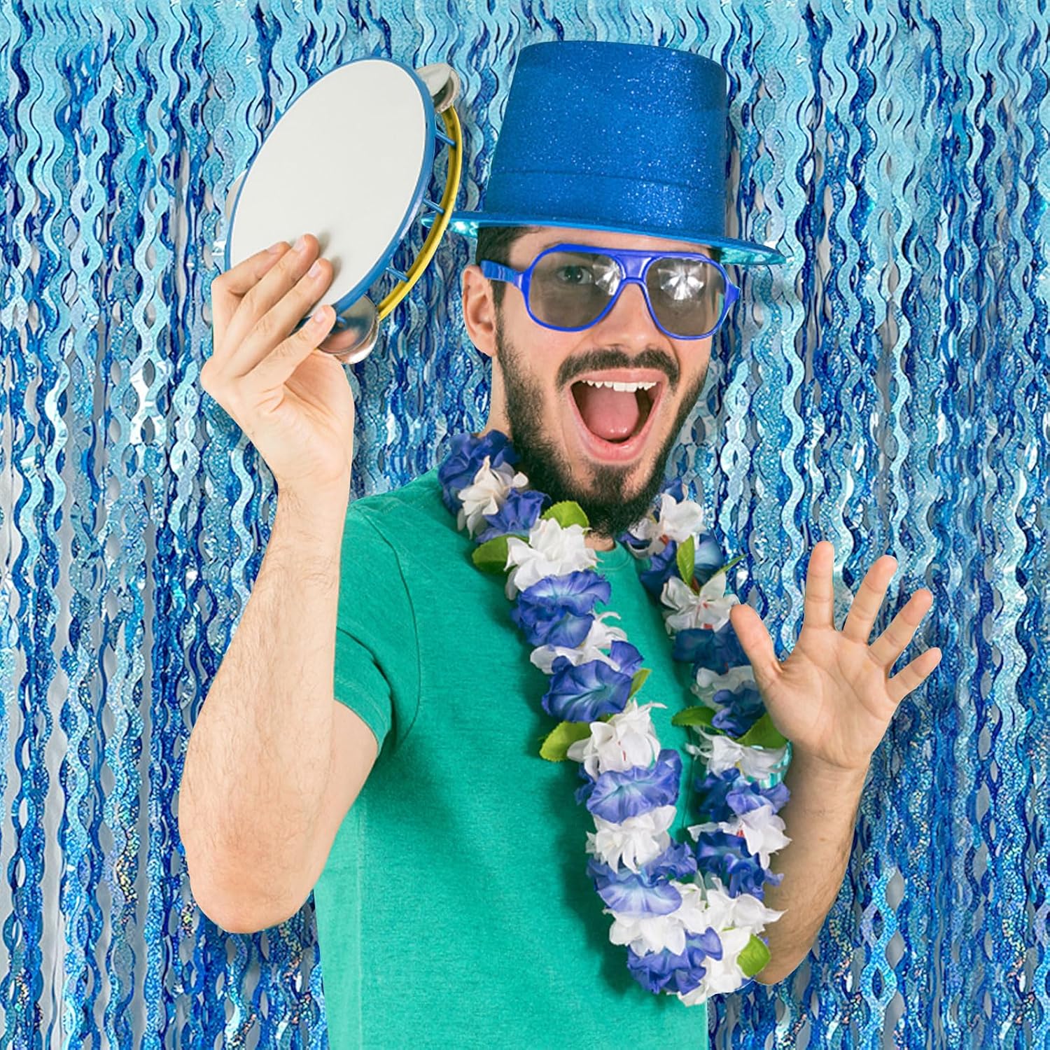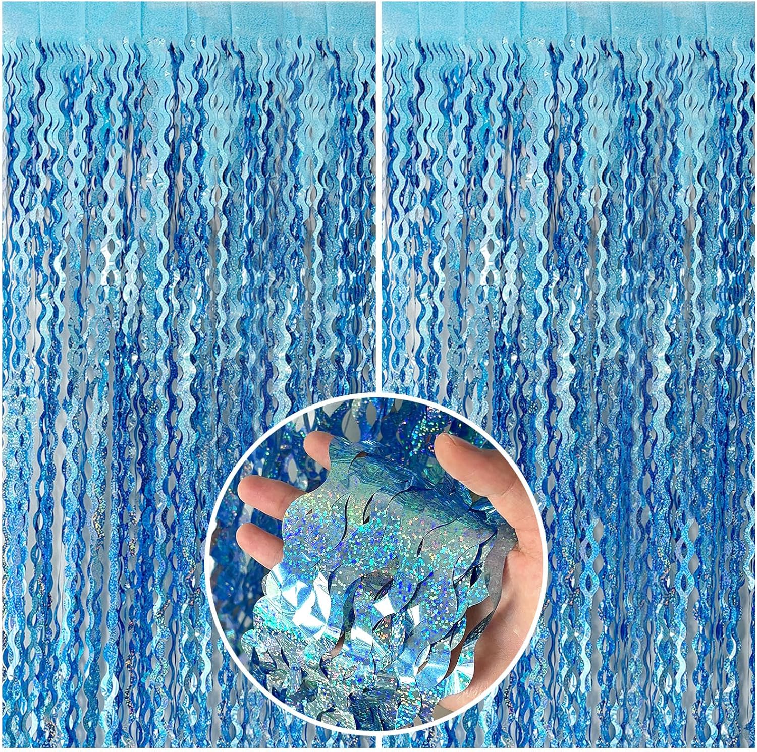• Blue Streamers Backdrop:The fringe backdrop is made of high-quality shiny tinsel.Outer covering sparkle paillett PET film material,thicker than similar products, not easy to fall apart, durable and reusable.Wave shape add sparkle as decorations for parties.