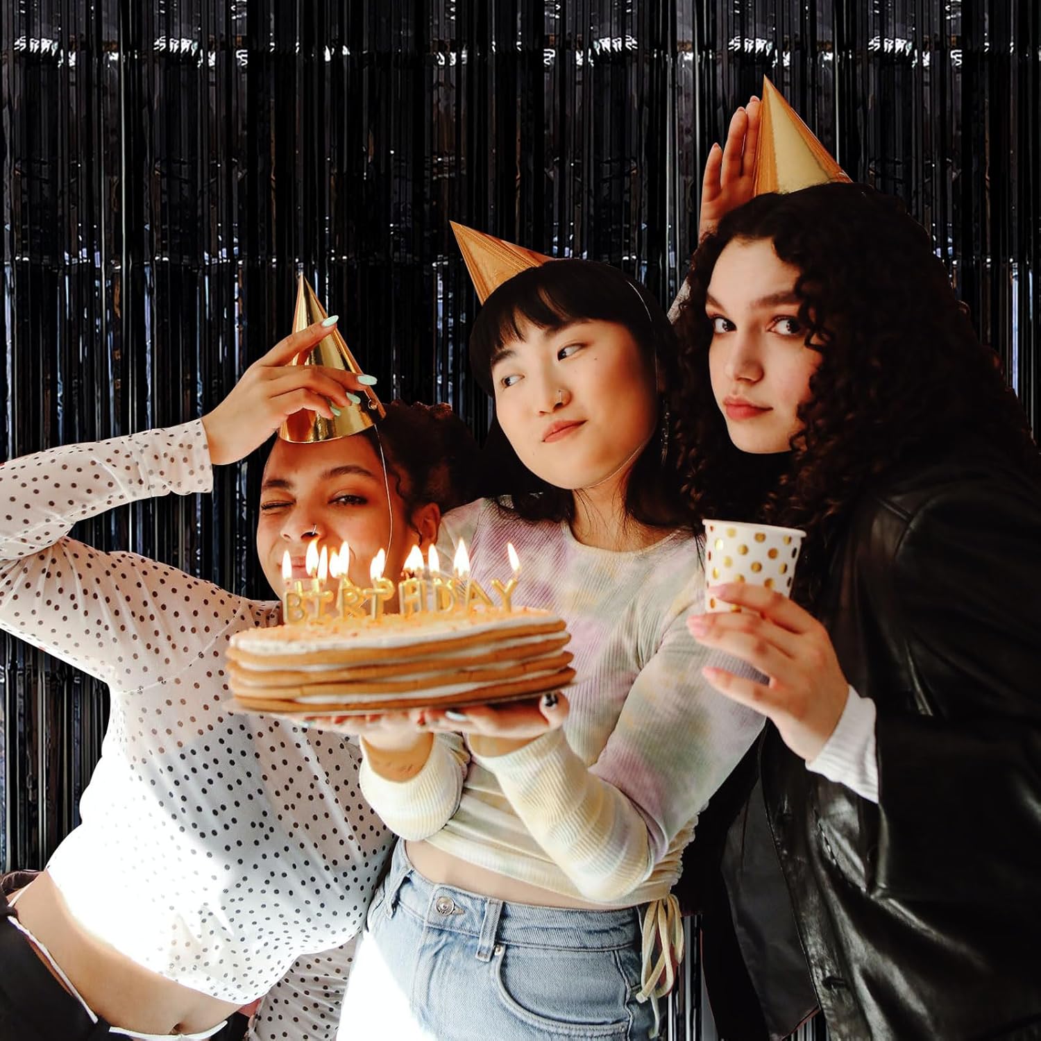 Black Party Streamers Foil Fringe Backdrop Curtains Tinsel Streamers Birthday Halloween Party Decorations Fringe Backdrop for Birthday Party Graduation Bridal Shower Wizard Party Supplies