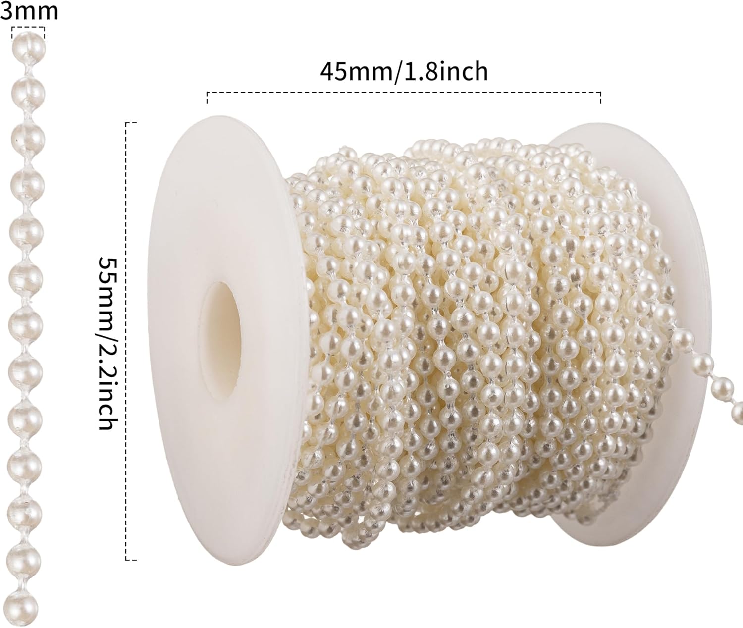 3mm Millet Beads Crafts Faux Pearl Beads Garland Pearl Bead Roll Strand of Pearls to Decorate Floral Centerpieces Wedding Party Favor Christmas Tree(33 Feet Ivory)