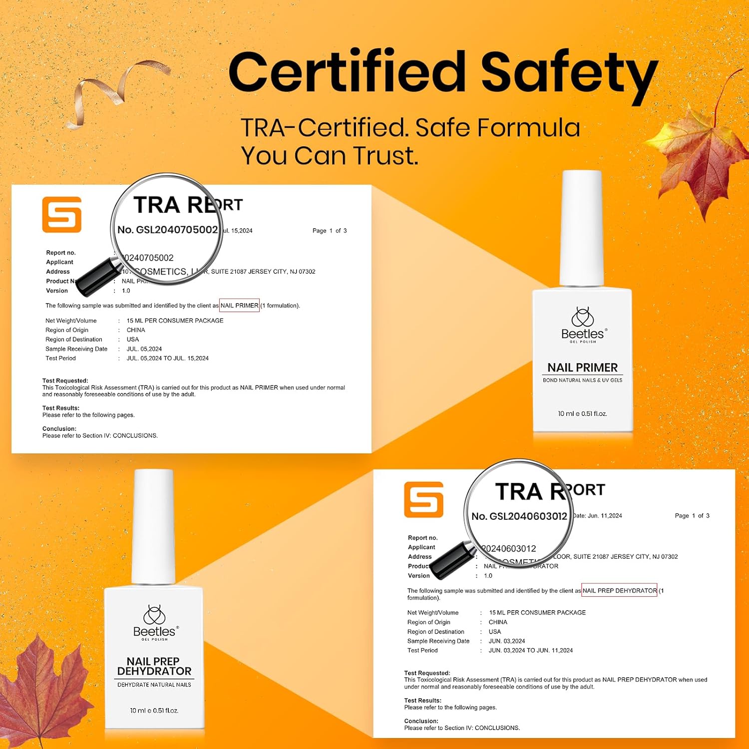 • Hema Free Formula: Beetles nail dehydrator and primer set use an Hema Free formula, which is naturally gentle and will not harm natural nails, while providing excellent cleaning effects, lasting for more than 30 days.