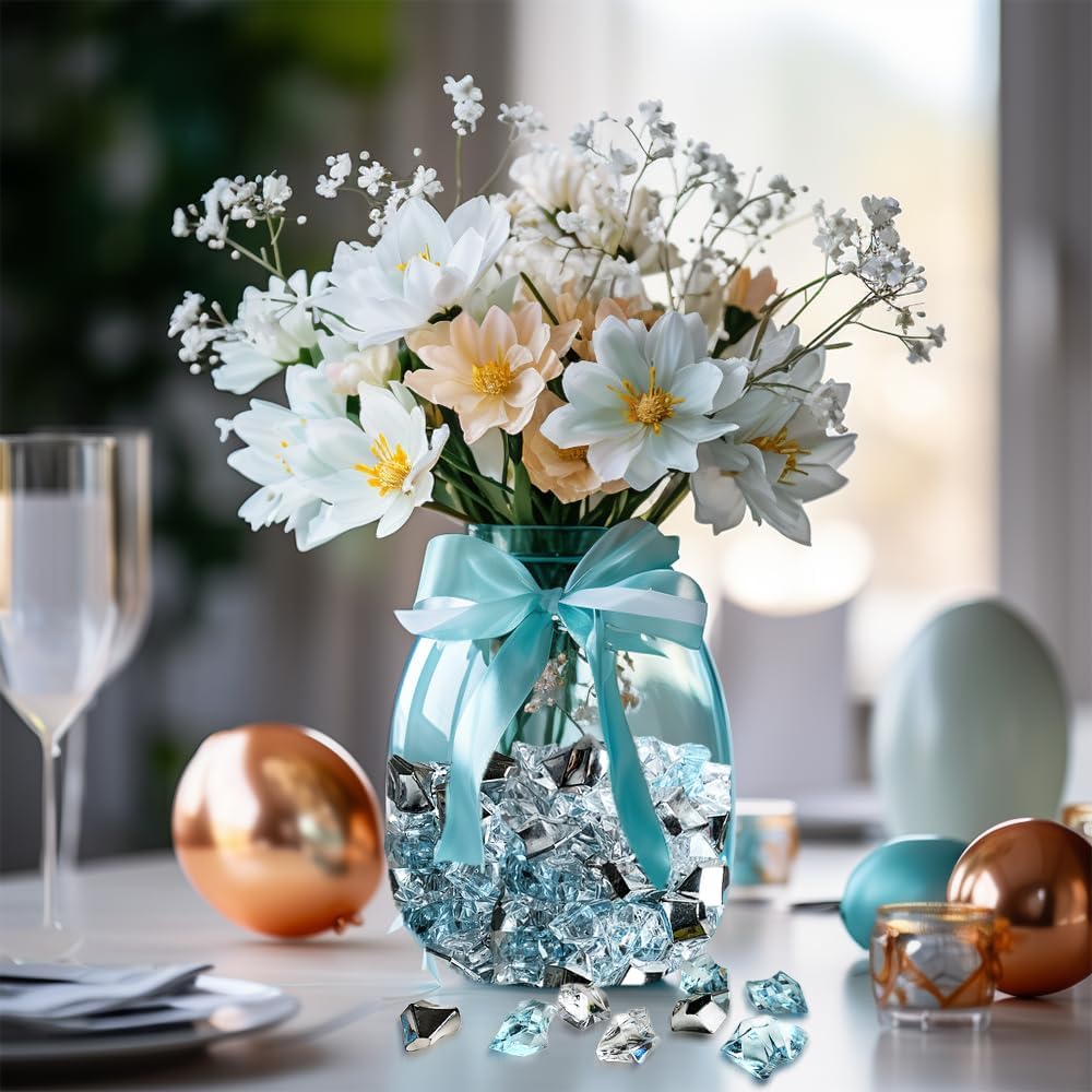 • Vase Filler: These plastic ice rocks are made of high quality material, you can add these gems to the glass bottle as filler or with flower for floral decoration.Make your home look more sparkling.