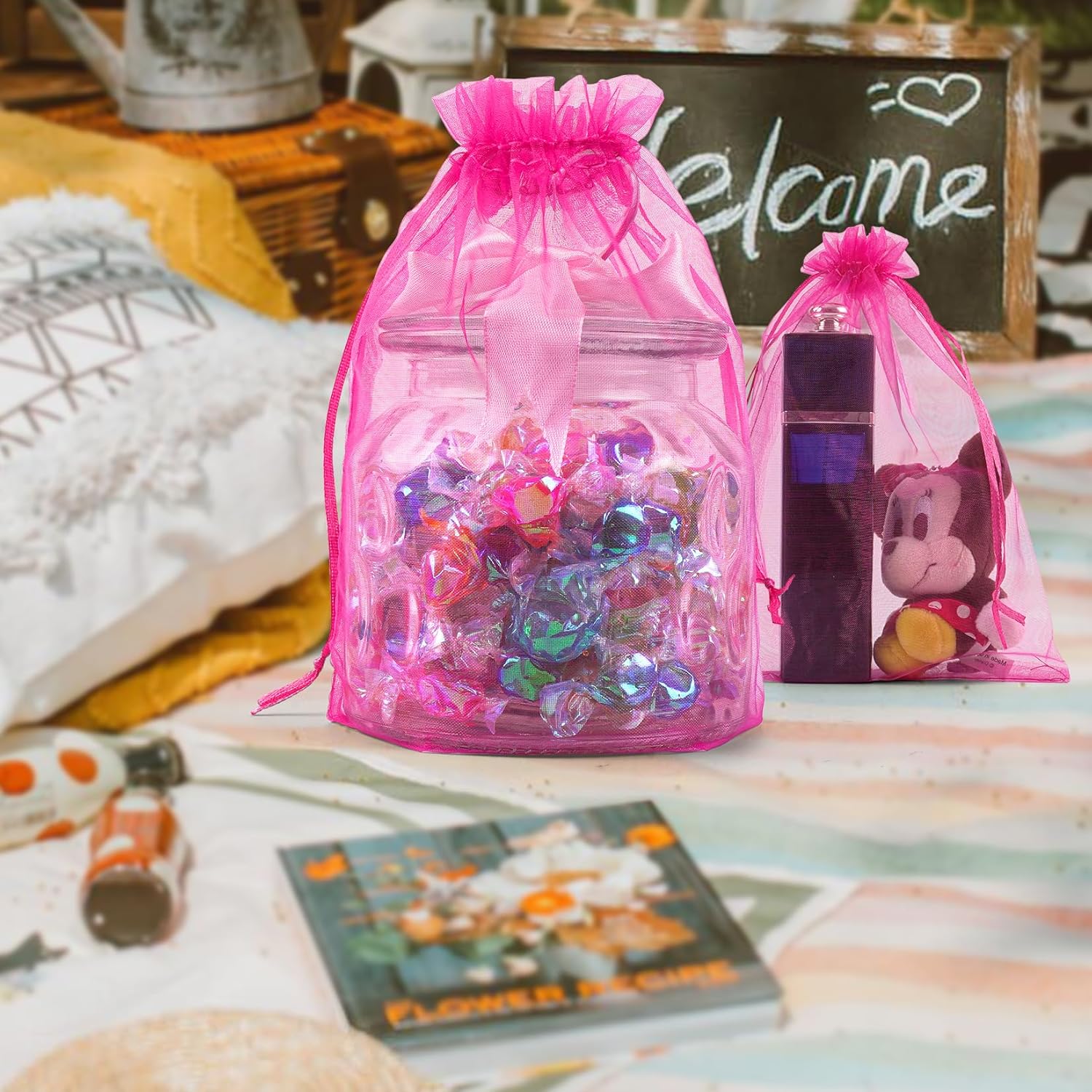 • SIZE&COLOR- Size: 6.5x9 Inch, Color: HOT PINK, also available in other colors (Pink, Green, Black, White, Purple, Orange). Package includes 100 pieces of pink organza bags, perfect for various occasions: Valentine, Christmas, Halloween, Wedding or Birthday, etc.
