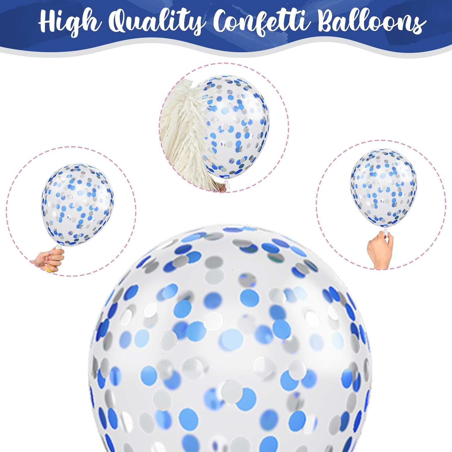 • πŸŽ‰ Easy to Use - The navy blue and silver balloons support both air and helium. You can blow them up with a mouth, pump or helium. After inflating, shake the confetti balloon and gently rub it with your hair or dry fabric to make the confetti stick to the side of the balloon, which can make the balloon look more beautiful. When the party is over, you can pop the balloons to let the confetti fall, adding fun to the party.