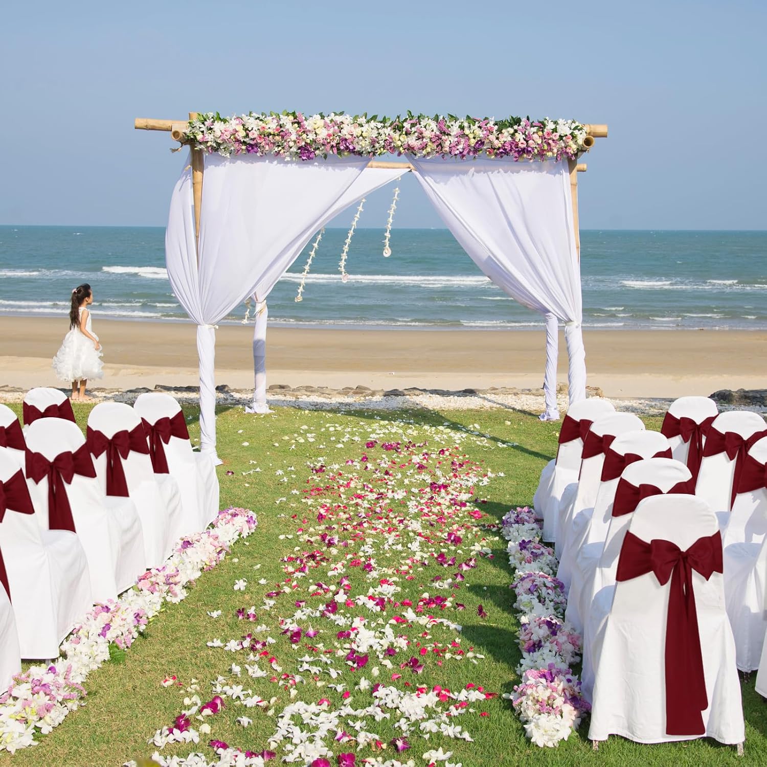 • Size & Package:You will get 10 pieces burgundy satin chair sashes, and the size is about 108" x7" or 275cm(l) x 17cm(w). These chair ties adopt flating packing, please to tie the bow by yourself. Each package includes chair sashes only, no chair covers