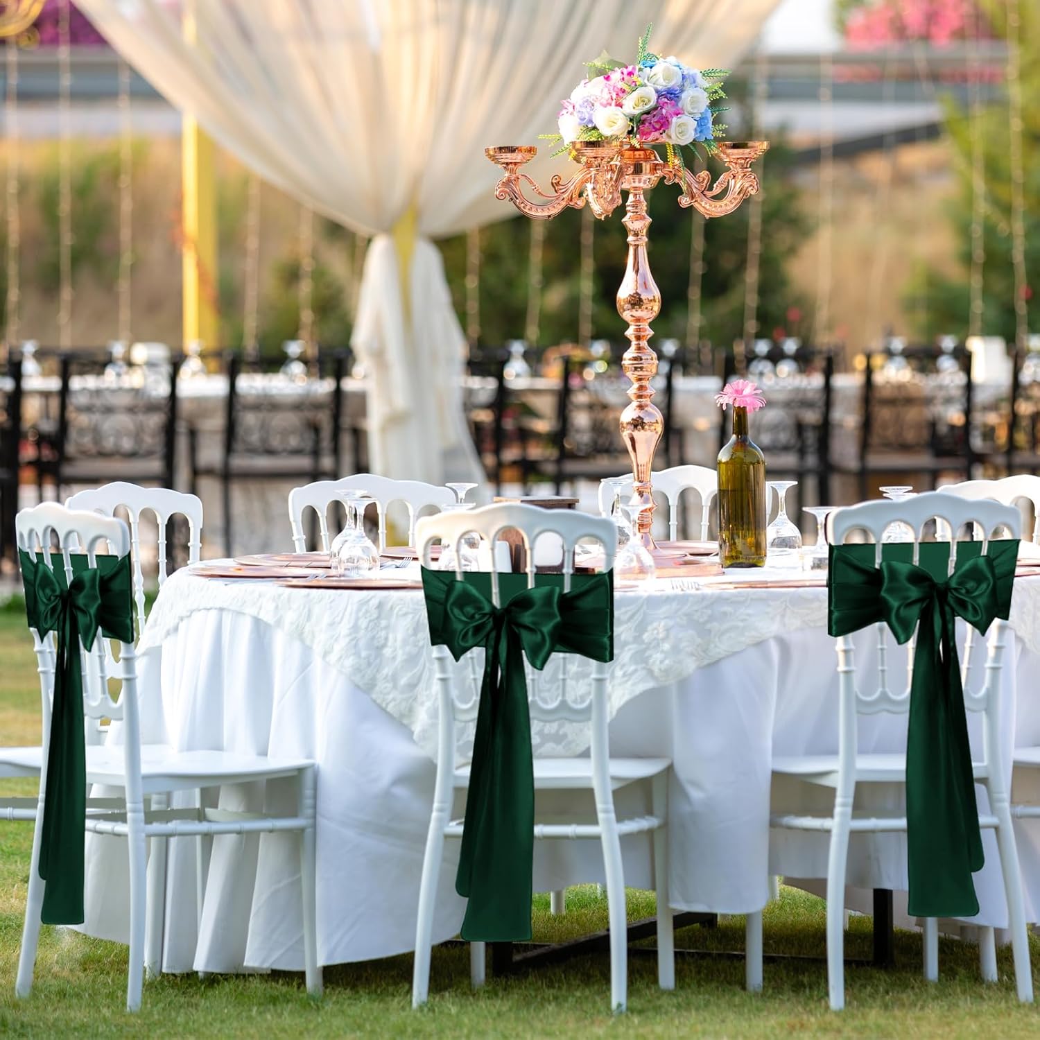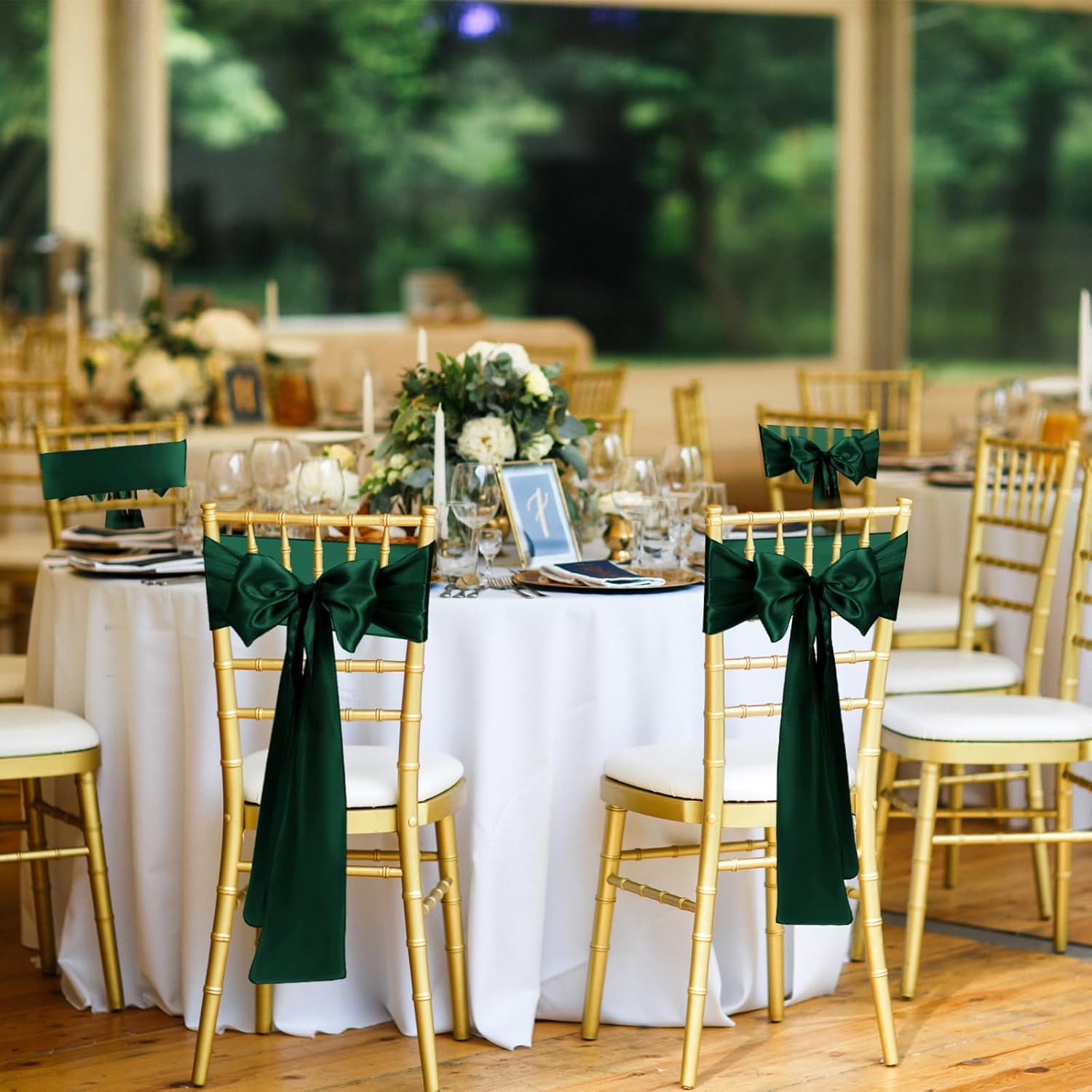 50 PCS Forest Green Satin Chair Sashes Bows Universal Chair Ribbon Ties Back Sash for Wedding Party Reception Events Banquets Hotel Event Chair Cover Decoration (7x108 inch)