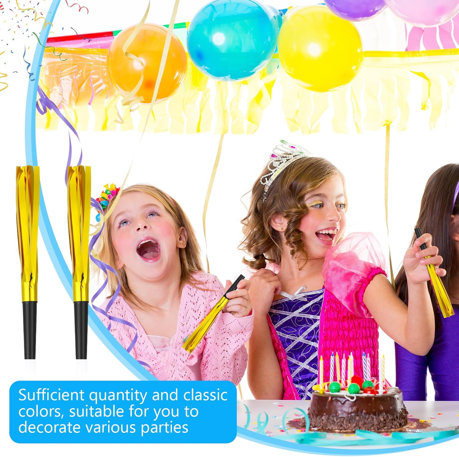 48 Pcs Gold Noise Makers Glitter Metallic Fringed Noise Makers Horns for Baby Shower, Kids Birthday, Wedding Party, New Year Party Favor