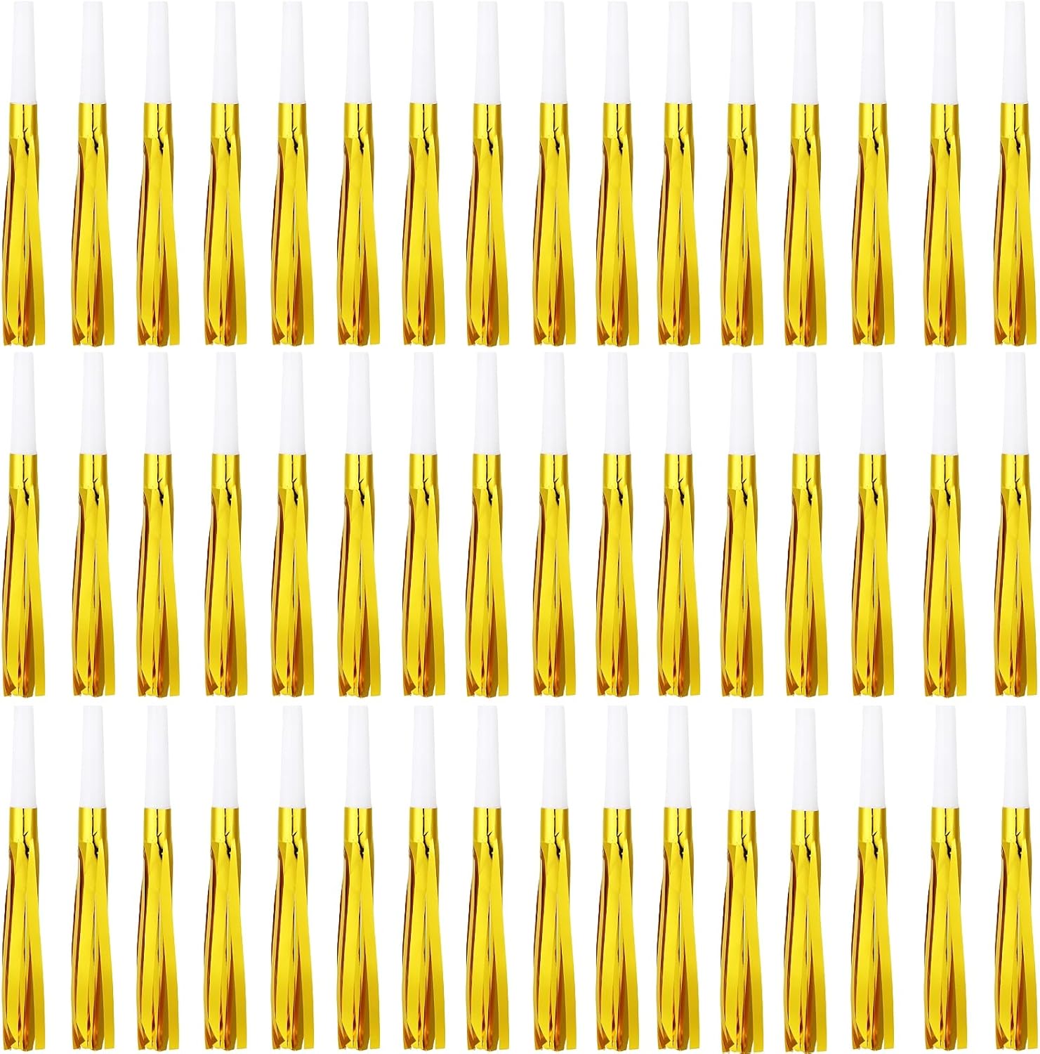 48 Pcs Gold Noise Makers Glitter Metallic Fringed Noise Makers Horns for Baby Shower, Kids Birthday, New Year Party Favor - Gold