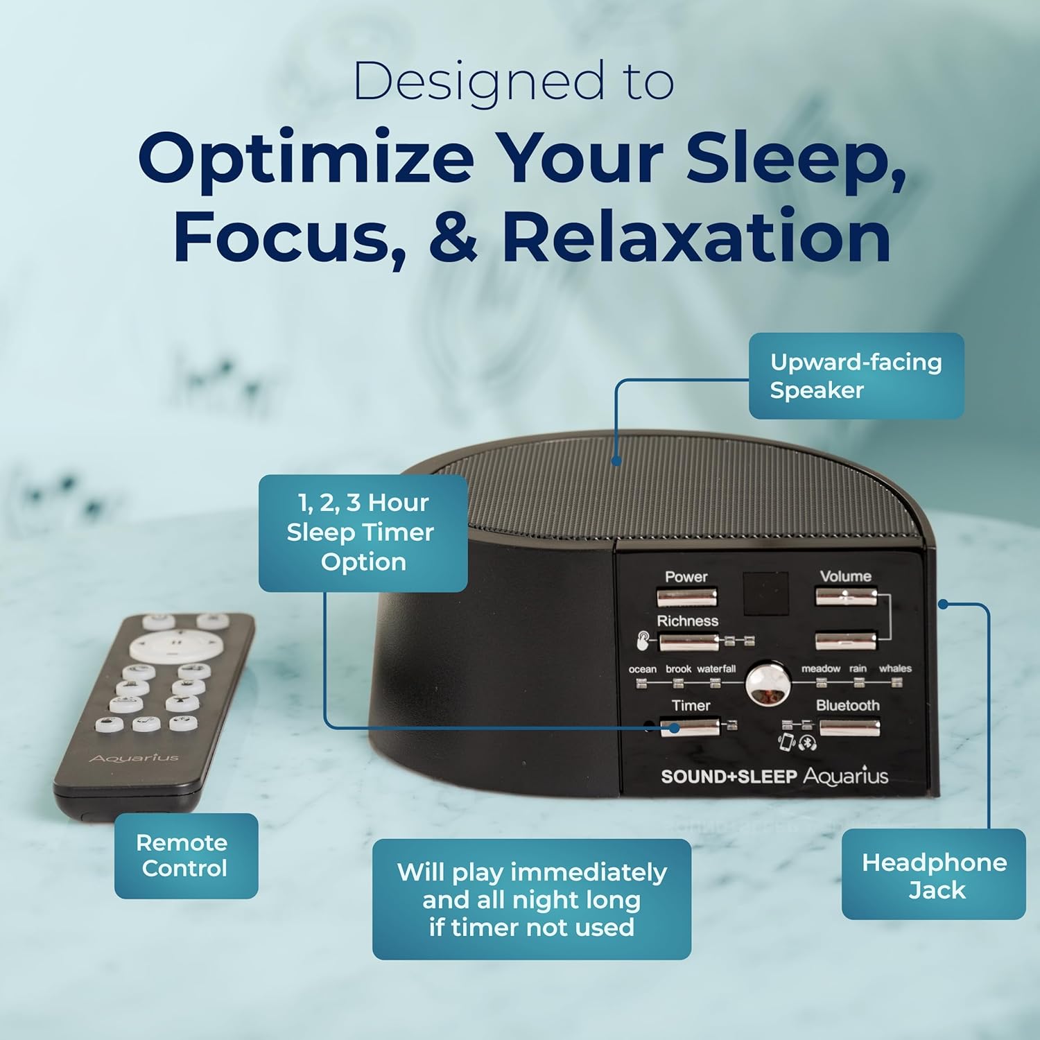 • Innovative Sleep Device: Adaptive Sound Technologies Sound + Sleep Aquarius model is a portable sleep machine that includes a Bluetooth speaker and remote, and emits only aquatic sounds