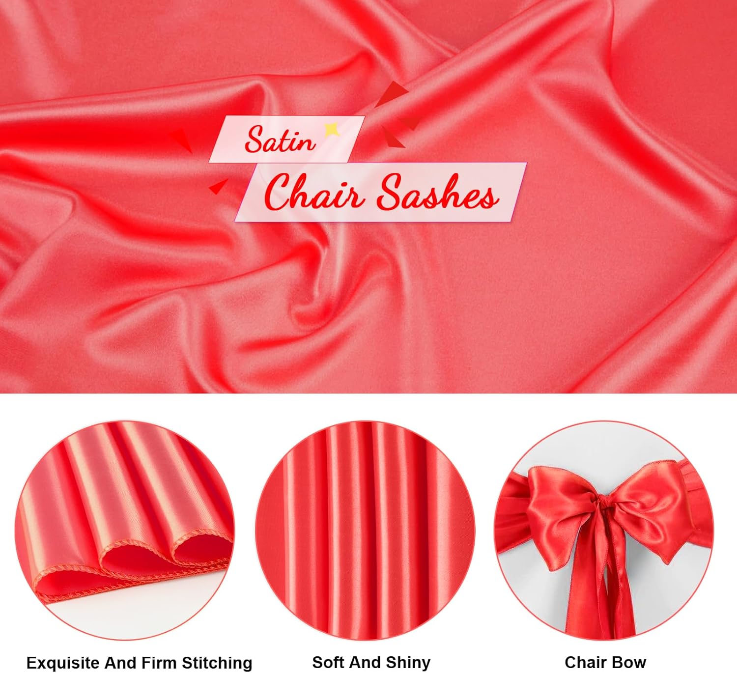 • Care Instructions: These red satin chair sashes ties are hand or machine washable with cold water only. Do not bleach and drying, please line dry. You can cold iron the front and back of it if needed