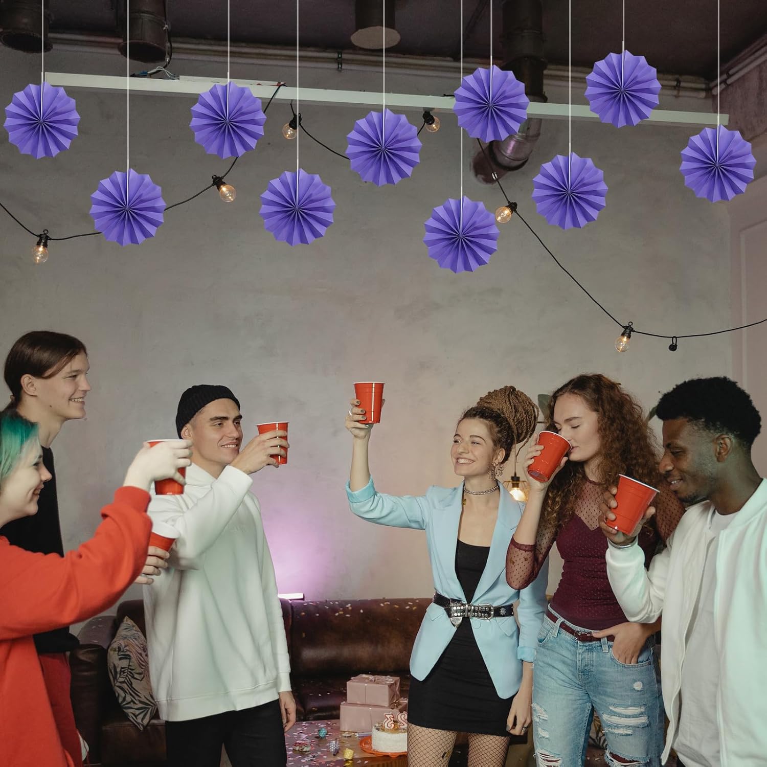 Purple Party Decorations,Purple Bridal Shower Decorations,Halloween Decor Events Accessories,Retirement Decorations Paper Fans Bulk 8in,Anniversary Decorations for Party 30 Color DIY Set(Purple)