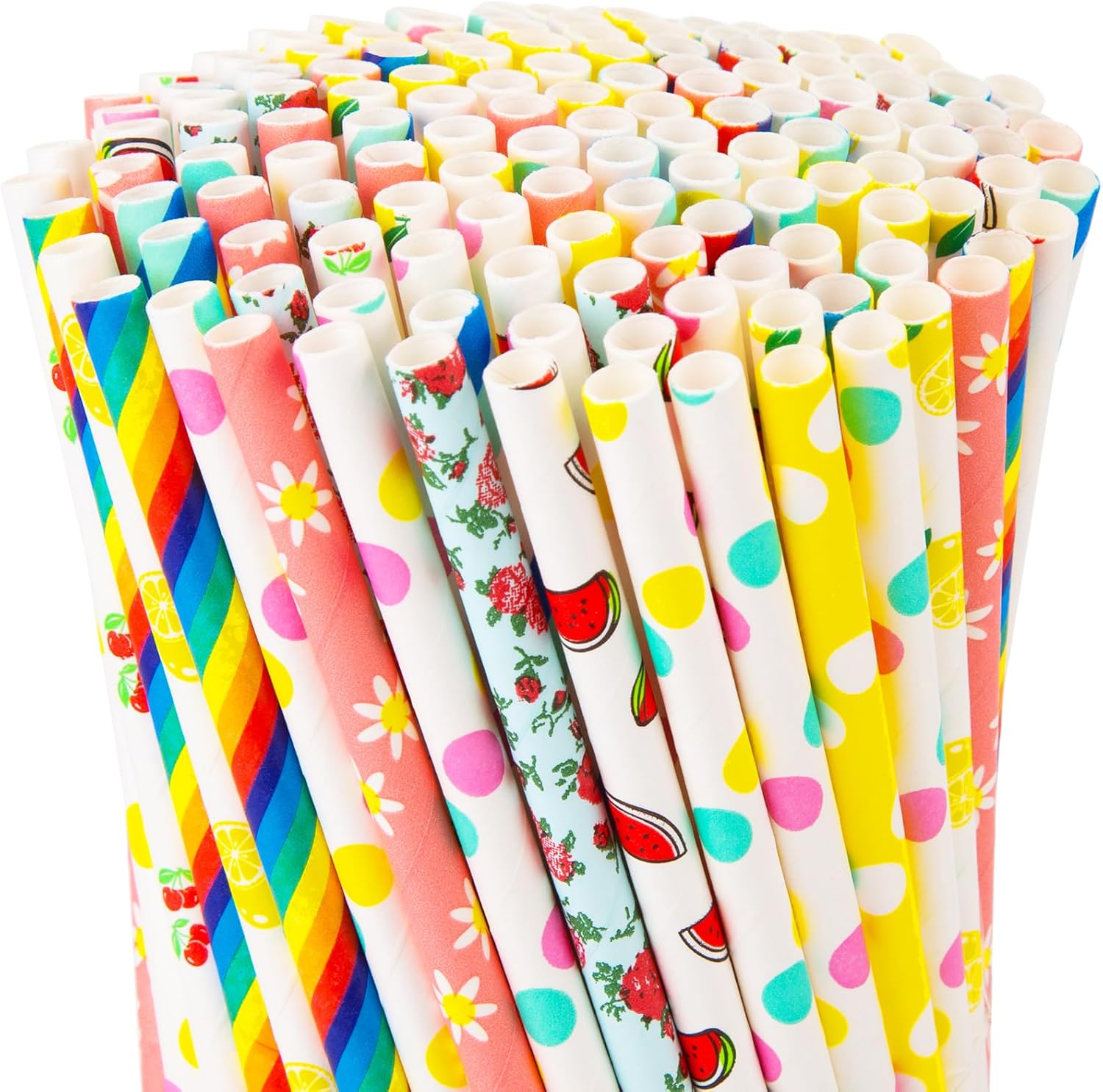 • Premium Value Set: This set includes 180 paper straws in 9 different patterns, each measuring 0.24 inches in diameter and 7.8 inches in length. Designed to fit most beverage cups and containers, these straws are cut flat and smooth and come in equal lengths. The straws are beautifully printed with vibrant, long-lasting colors. Perfect for family and friends parties, you can mix and match as many colors as you like