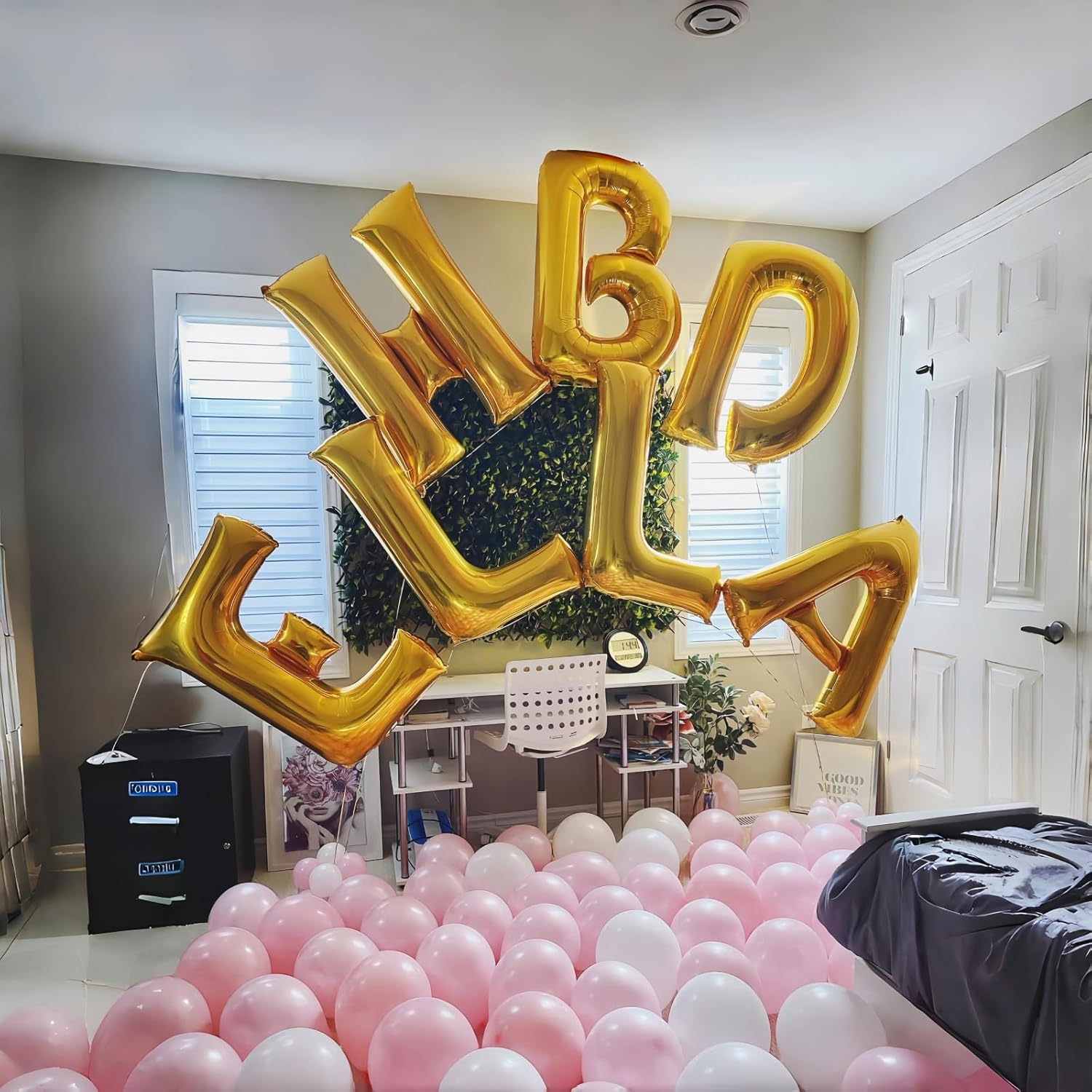 Custom Letters Balloon Gold, Large Helium Alphabet Name Balloon L Decor, 40 Inch Self Inflating Mylar Letter Foil Word Customize Balloons for Girls Women Birthday Anniversary Party Decoration Supplies