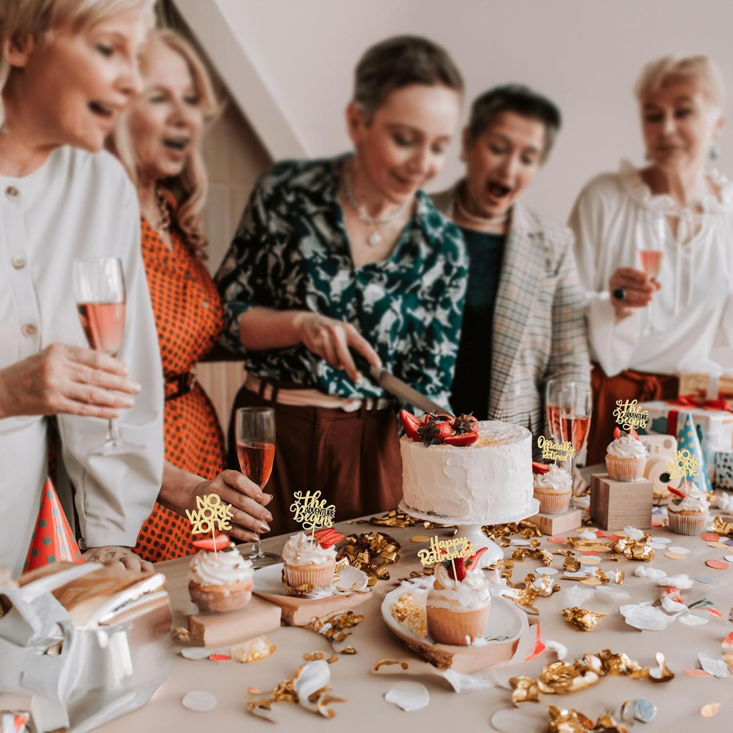 • 【NO Required】: 24Pcs Happy Retirement Cupcake Toppers can put in the cake directly! These Happy Retirement Cupcake Toppers saves your time and super easy to use. You can easily dress up your birthday theme cakes, yes! but don't stop there, put them into desserts, cookies, fruit pieces, appetizers, muffins and so much more!