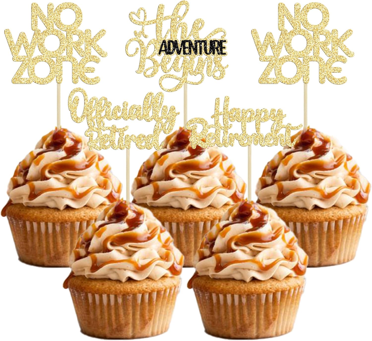 24Pcs Happy Retirement Cupcake Toppers Officially Retired Cake Toppers No Work Zone Adventure Begins Cupcake Picks Retirement Theme Farewell Birthday Party Cake Decorations Supplies Gold