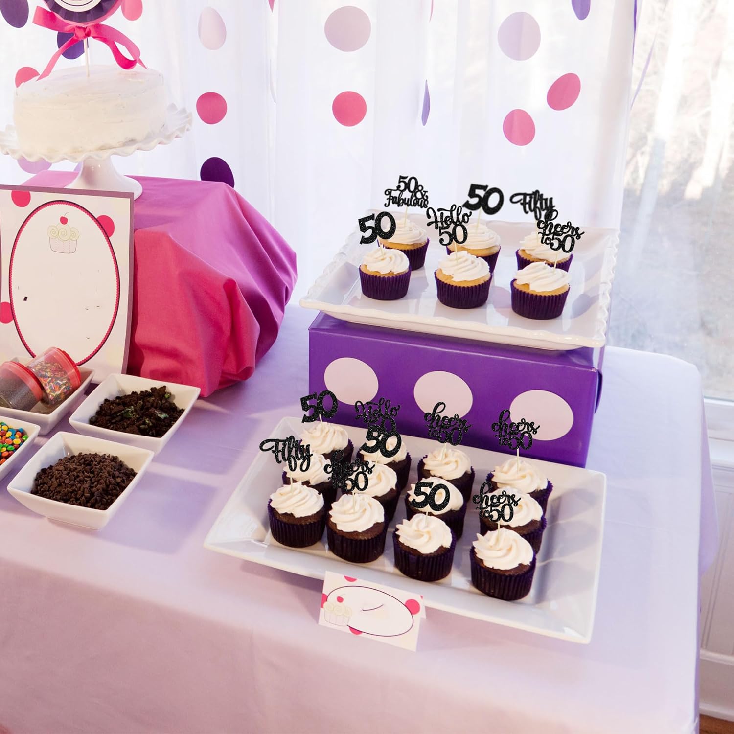 • -These Happy 50th Birthday Cupcake Toppers are so cute and good for happy 50th birthday theme party, cheers to 50 years theme party, 50 fabulous theme party, happy 50th birthday anniversary theme party cake decorations. They can make your cupcake more attractive and bring the fun to your party. You can also apply them for ice cream, fruits, cookies and other desserts.