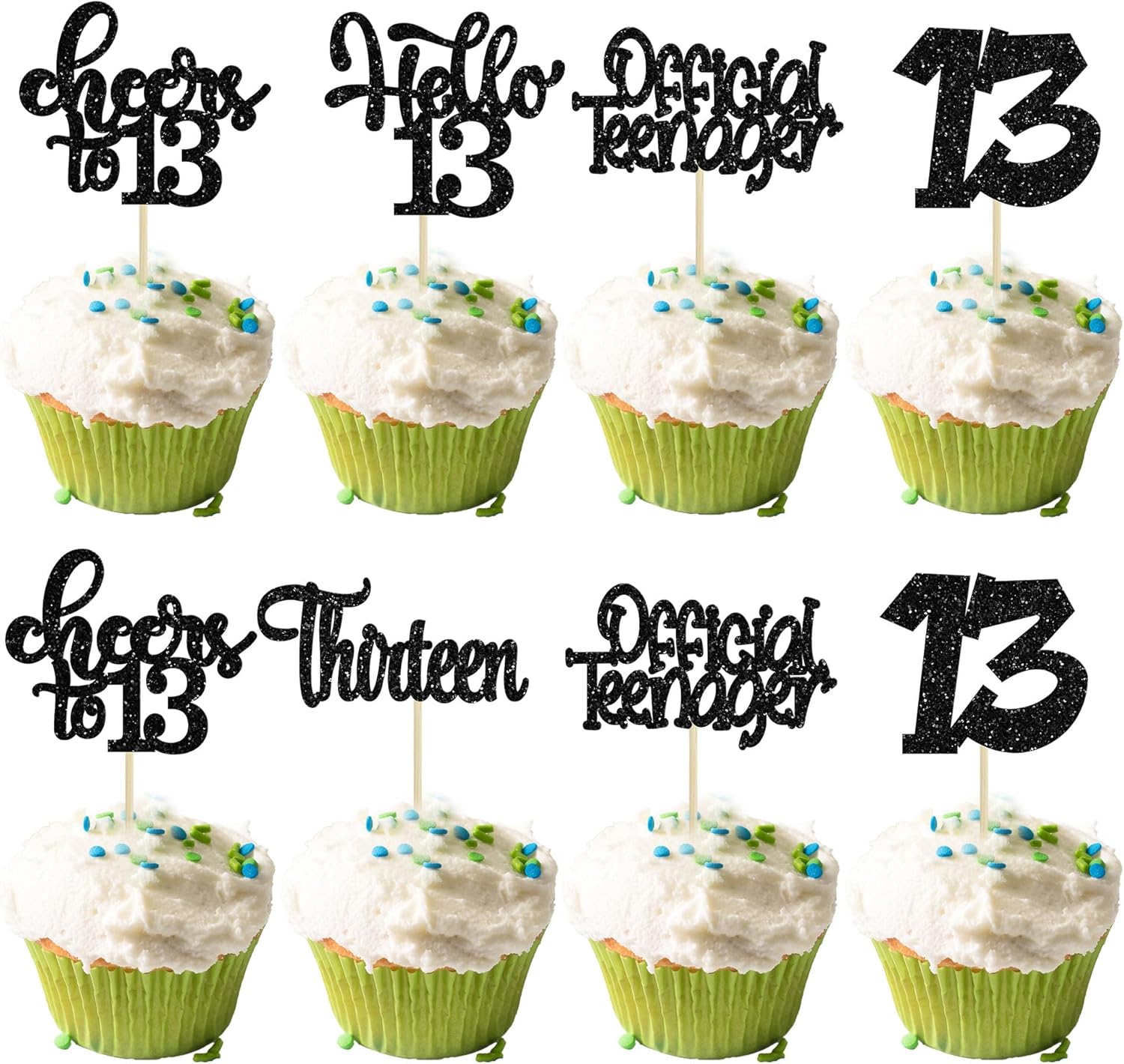 30Pcs 13th Birthday Cupcake Toppers Hello 13 Cupcake Picks Official Teenager Cheers to 13 Years Old Cake Decorations for 13th Birthday Anniversary Party Supplies Black Glitter