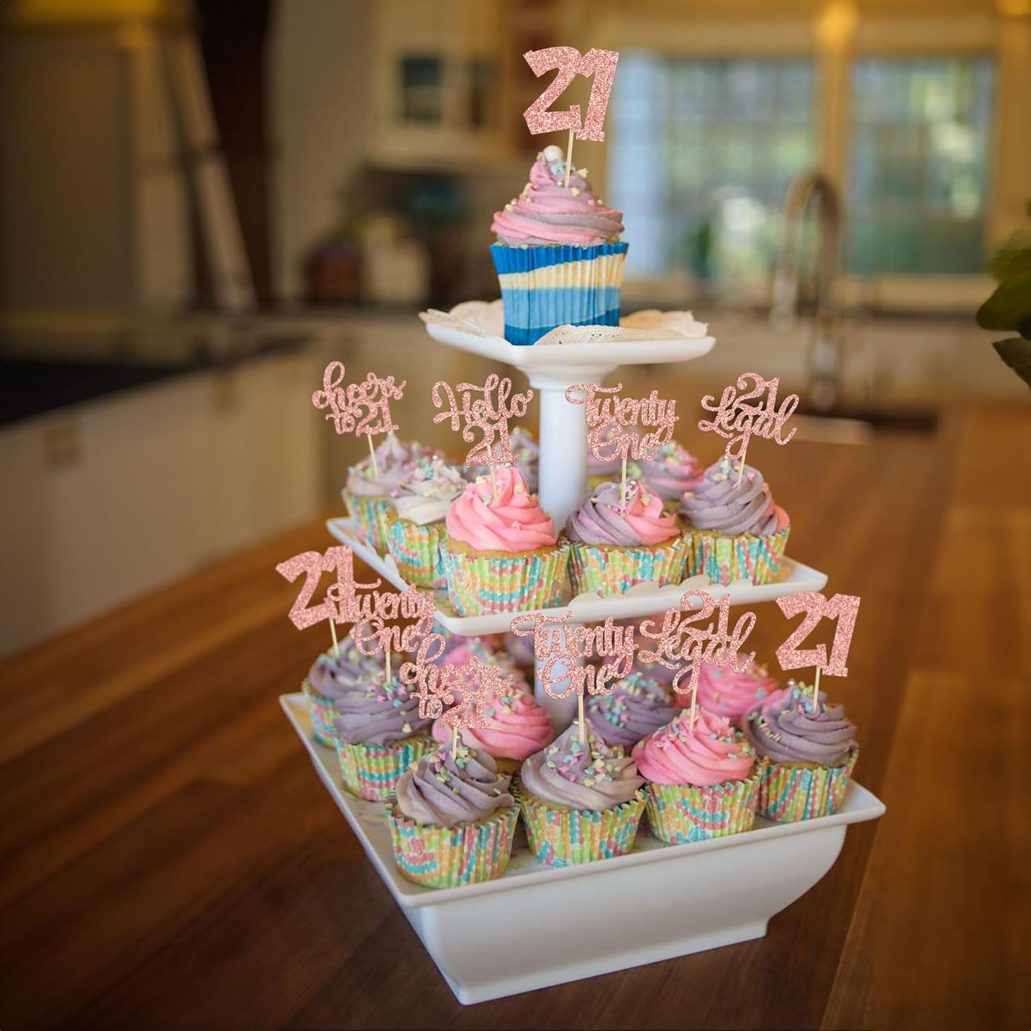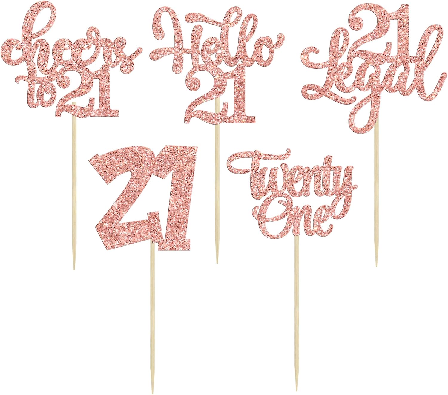 30pcs 21st Birthday Cupcake Toppers - Legal 21st Cupcake Picks - Cheers to 21 Years Old Cake Decorations - Rose Gold Glitter