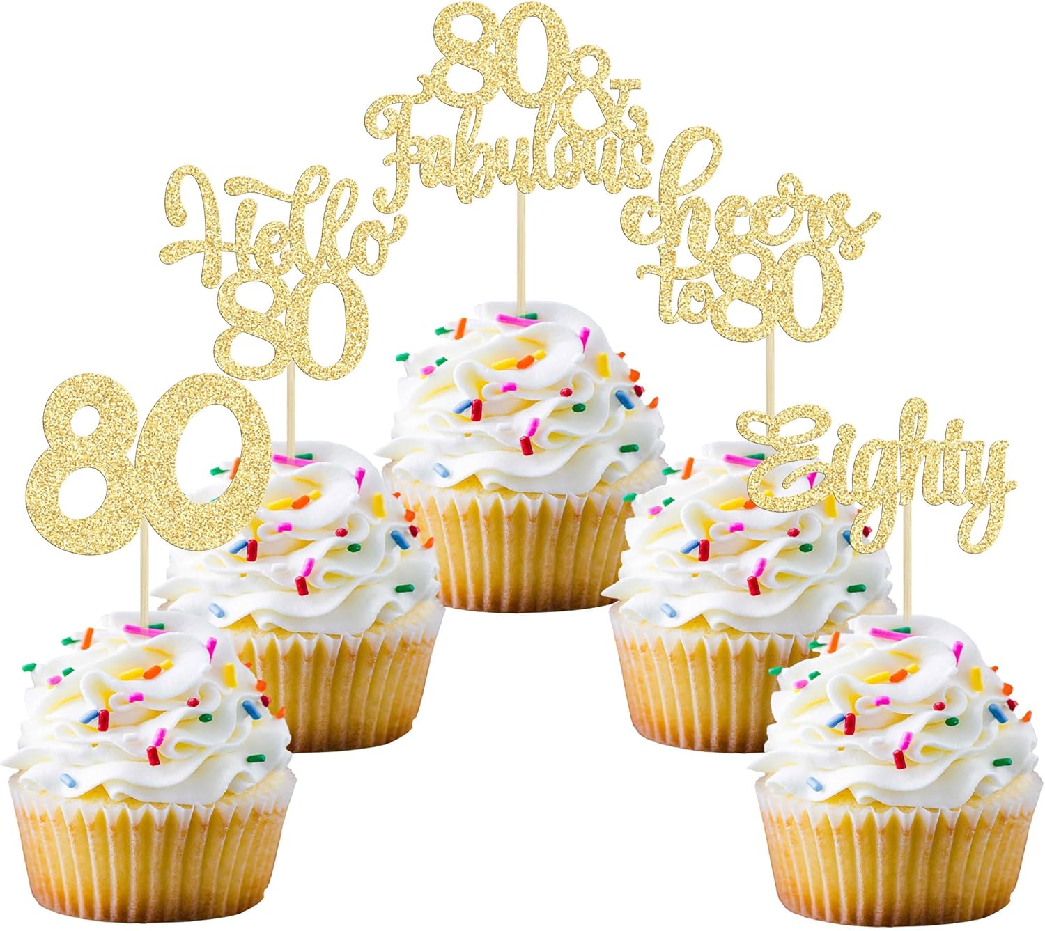 • -These Happy 80th Birthday Cupcake Toppers are so cute and good for happy 80th birthday theme party, cheers to 80 years theme party, 80 fabulous theme party, happy 80th birthday anniversary theme party cake decorations. They can make your cupcake more attractive and bring the fun to your party. You can also apply them for ice cream, fruits, cookies and other desserts.