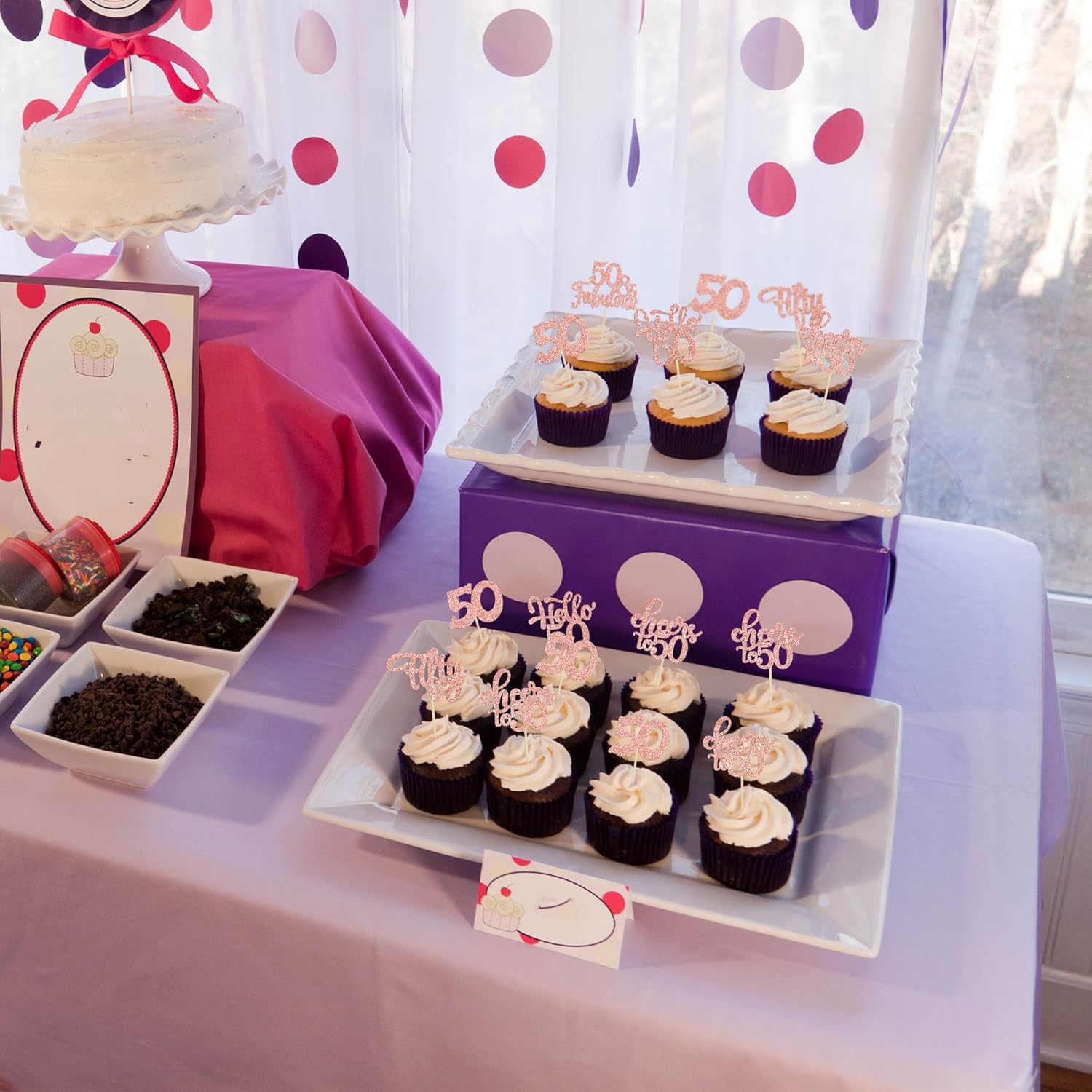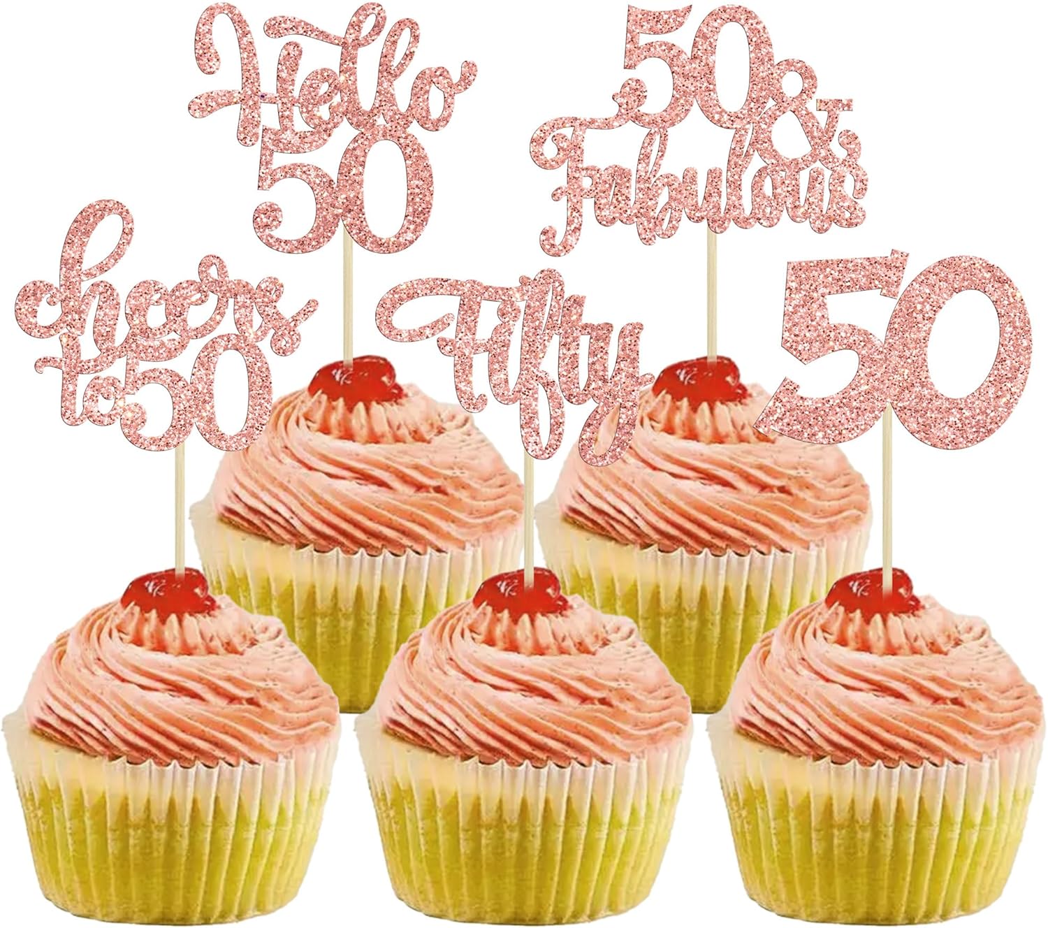 • -These Happy 50th Birthday Cupcake Toppers are so cute and good for happy 50th birthday theme party, cheers to 50 years theme party, 50 fabulous theme party, happy 50th birthday anniversary theme party cake decorations. They can make your cupcake more attractive and bring the fun to your party. You can also apply them for ice cream, fruits, cookies and other desserts.
