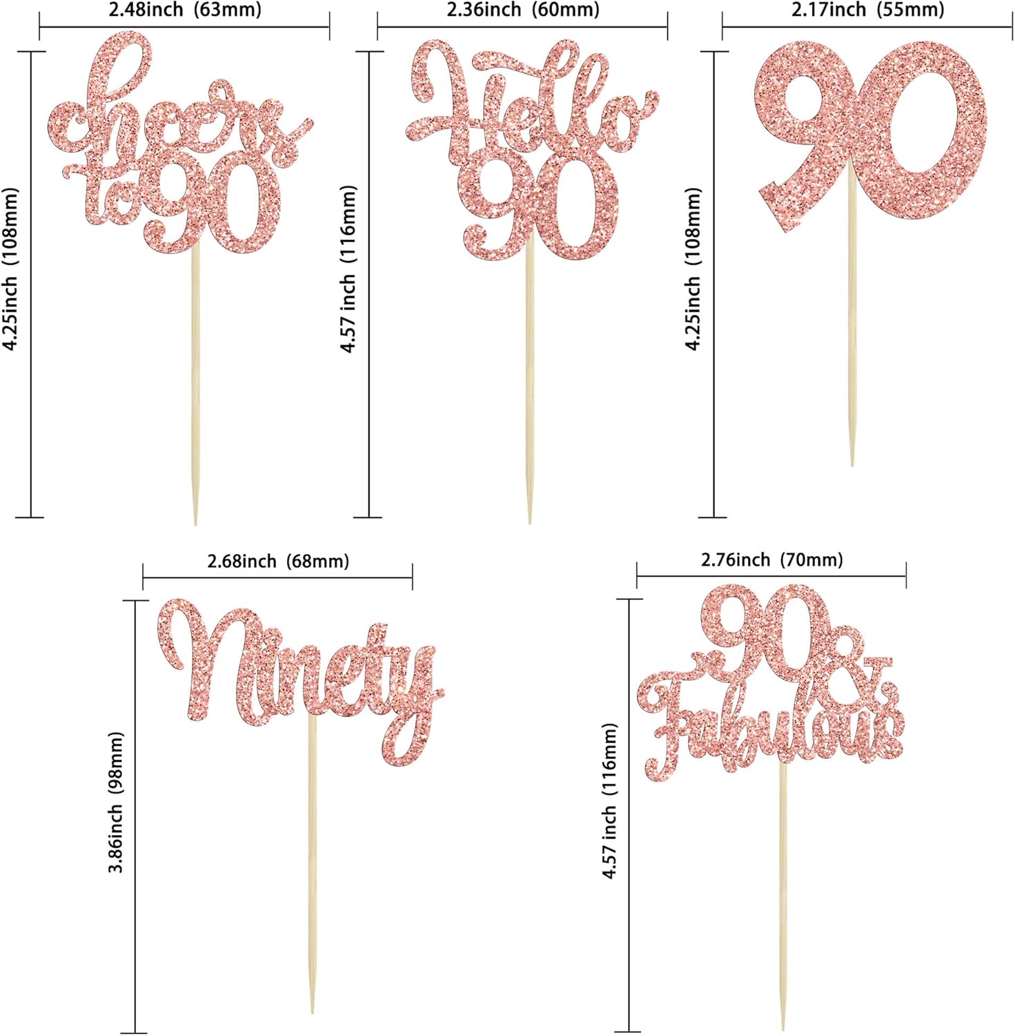 Gyufise 30pcs Happy 90th Birthday Cupcake Toppers - Rose Gold Glitter Ninety Cheers to 90 Years Old Cupcake Picks for Anniversary Party Cake Decorations