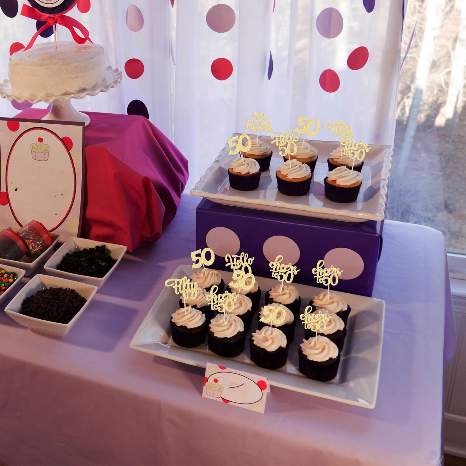 • -These Happy 50th Birthday Cupcake Toppers are so cute and good for happy 50th birthday theme party, cheers to 50 years theme party, 50 fabulous theme party, happy 50th birthday anniversary theme party cake decorations. They can make your cupcake more attractive and bring the fun to your party. You can also apply them for ice cream, fruits, cookies and other desserts.