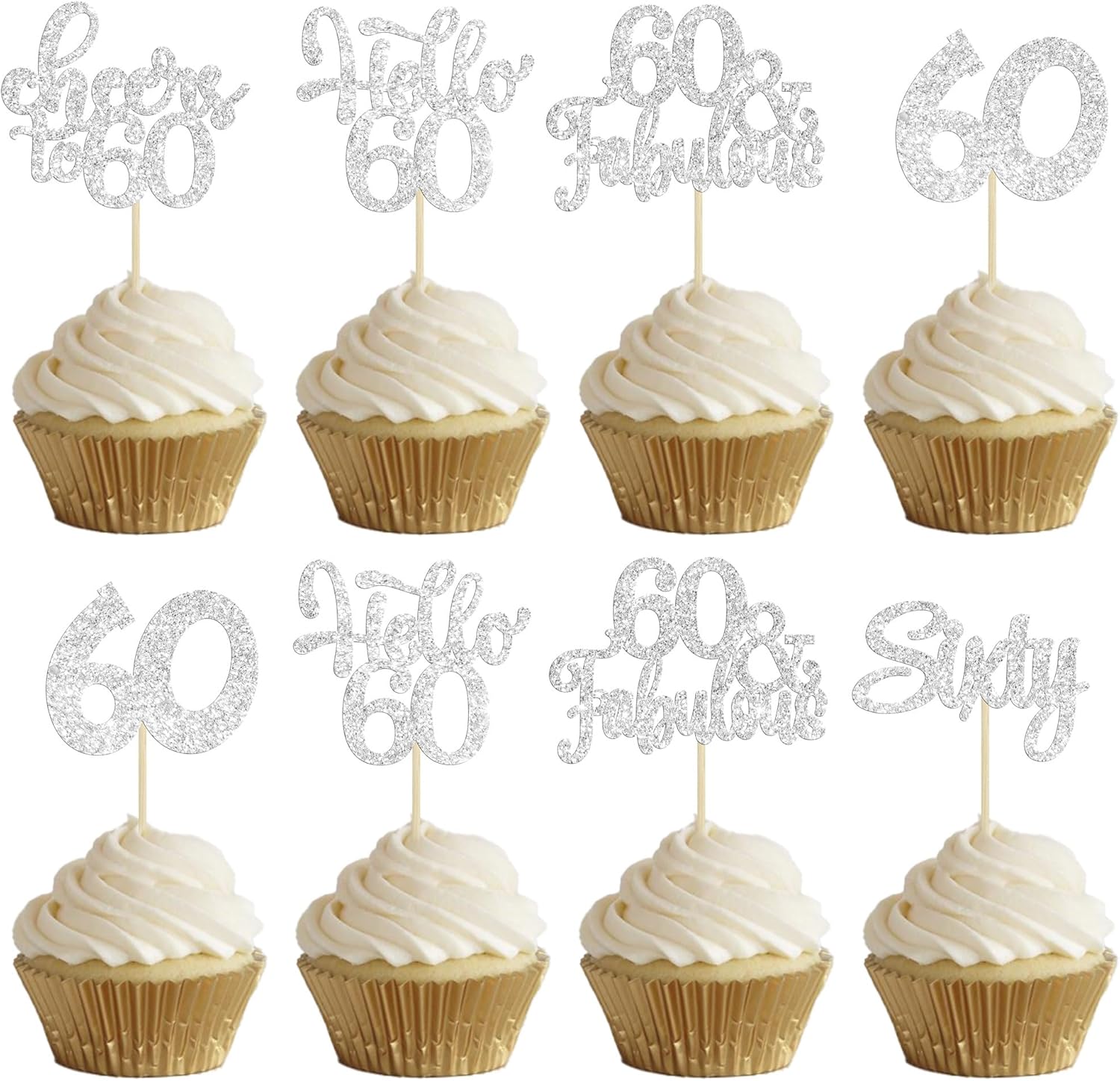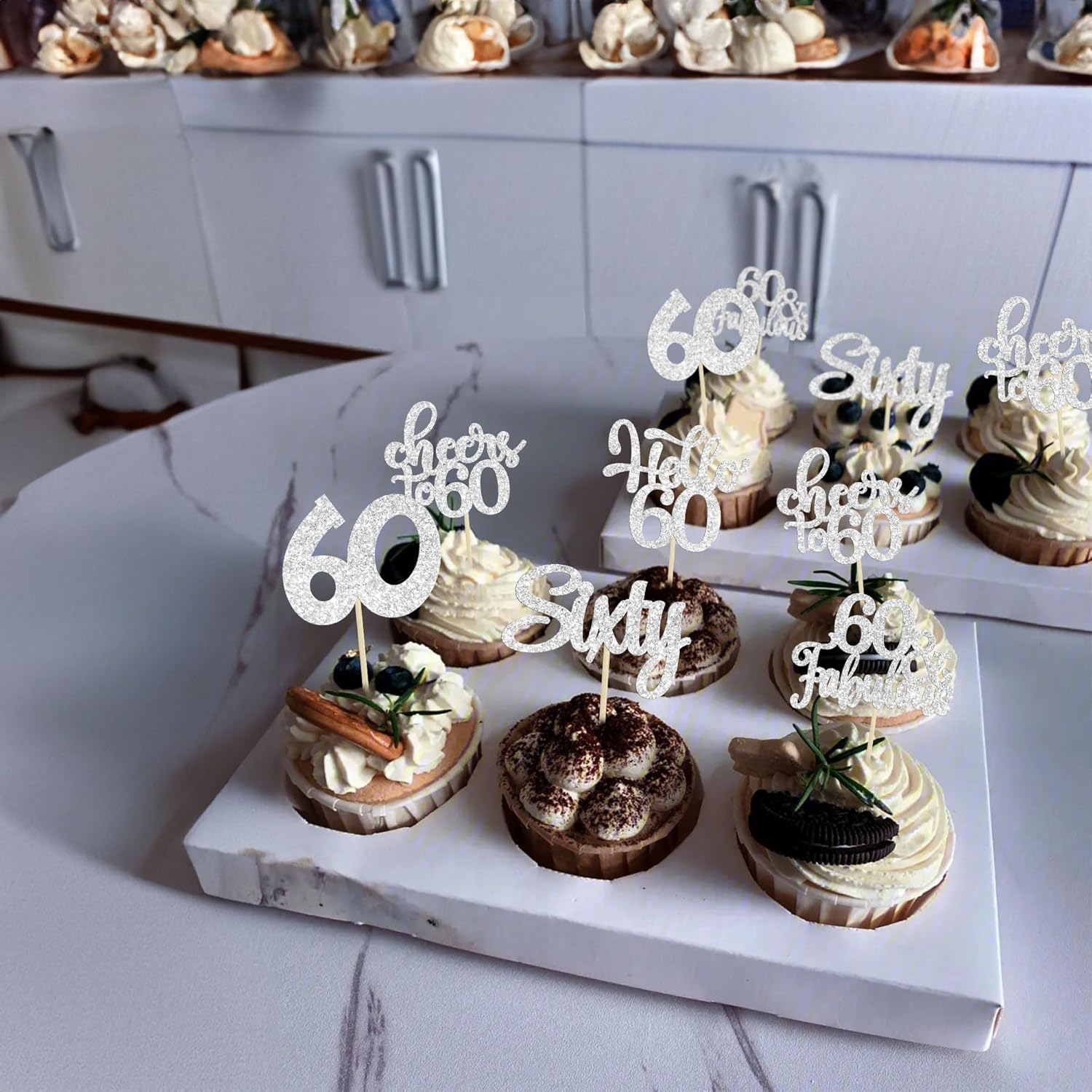 • -These Happy 60th Birthday Cupcake Toppers are so cute and good for happy 60th birthday theme party, cheers to 60 years theme party, 60 fabulous theme party, happy 60th birthday anniversary theme party cake decorations. They can make your cupcake more attractive and bring the fun to your party. You can also apply them for ice cream, fruits, cookies and other desserts.