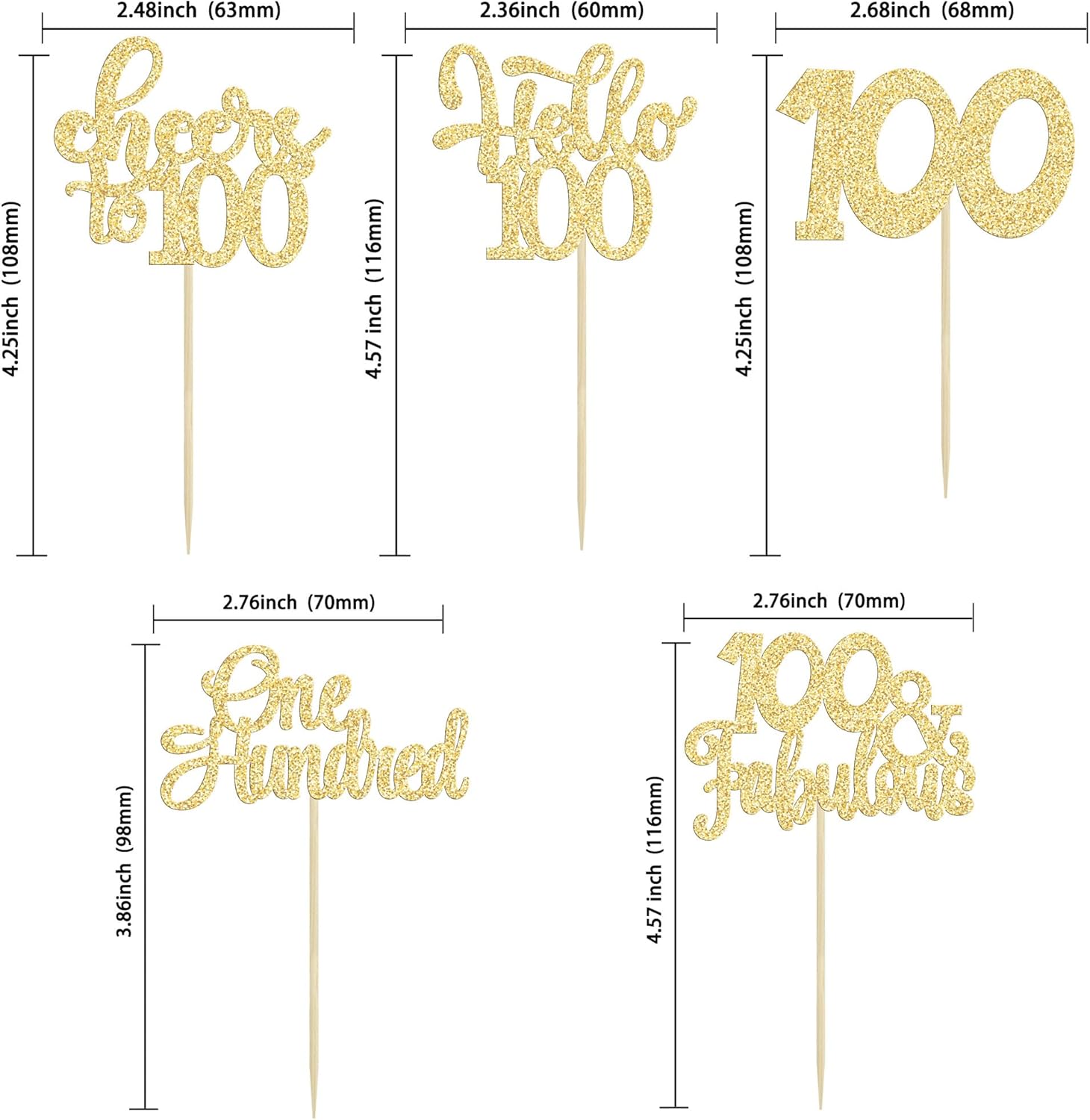 • -These Happy 100th Birthday Cupcake Toppers are so cute and good for happy 100th birthday theme party, cheers to 100 years theme party, 90 fabulous theme party, happy 100th birthday anniversary theme party cake decorations. They can make your cupcake more attractive and bring the fun to your party. You can also apply them for ice cream, fruits, cookies and other desserts.