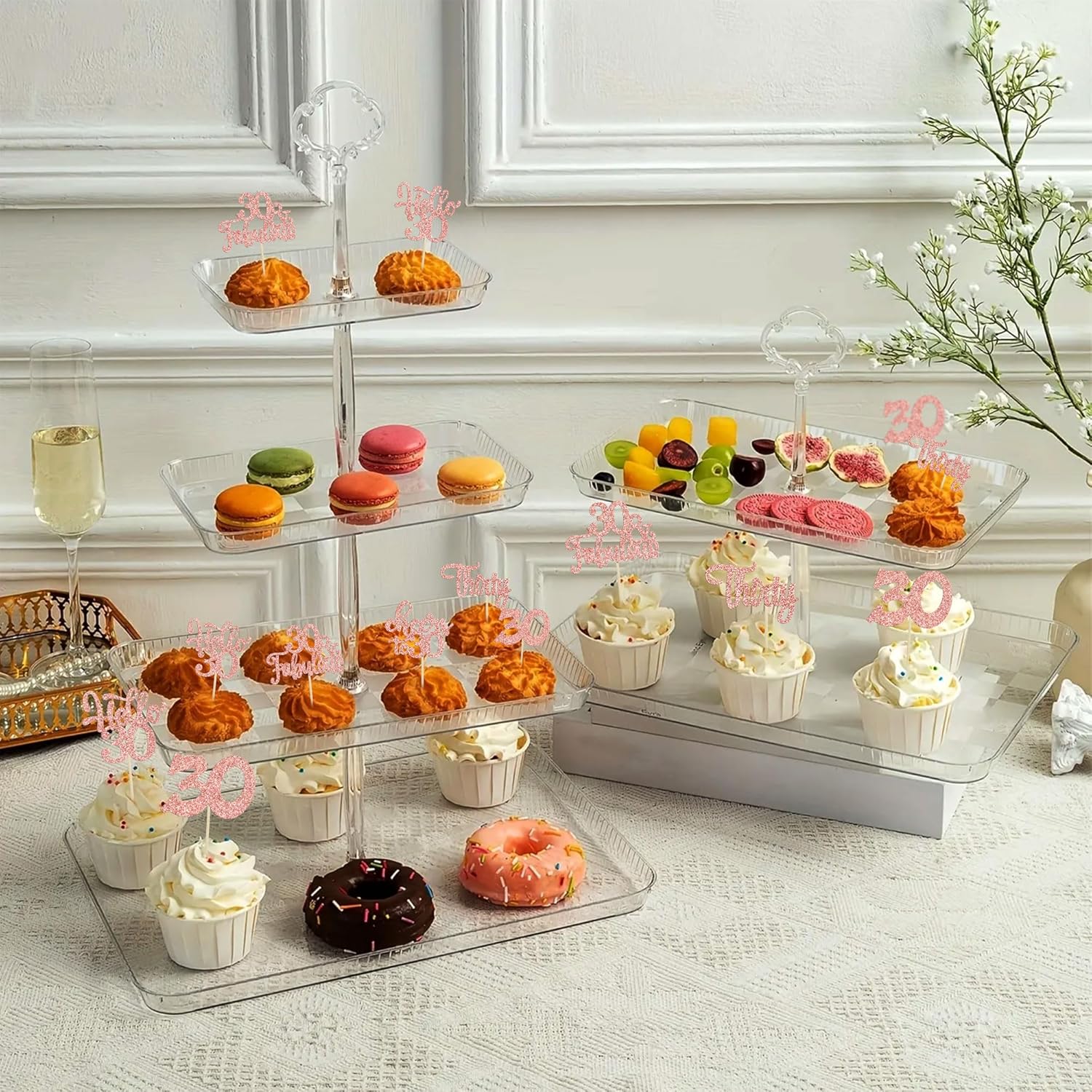 30Pcs Happy 30th Birthday Cupcake Toppers Rose Gold Glitter Thirty Cheers to 30 Birthday Cupcake Picks for Happy 30th Birthday Anniversary Party Cake Decorations Supplies