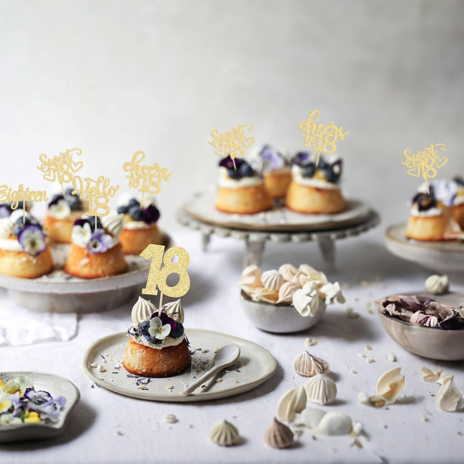 • -These Happy 18th Birthday Cupcake Toppers are so cute and good for happy 18th birthday theme party, cheers to 18 years theme party, 18 fabulous theme party, happy 18th birthday anniversary theme party cake decorations. They can make your cupcake more attractive and bring the fun to your party. You can also apply them for ice cream, fruits, cookies and other desserts.