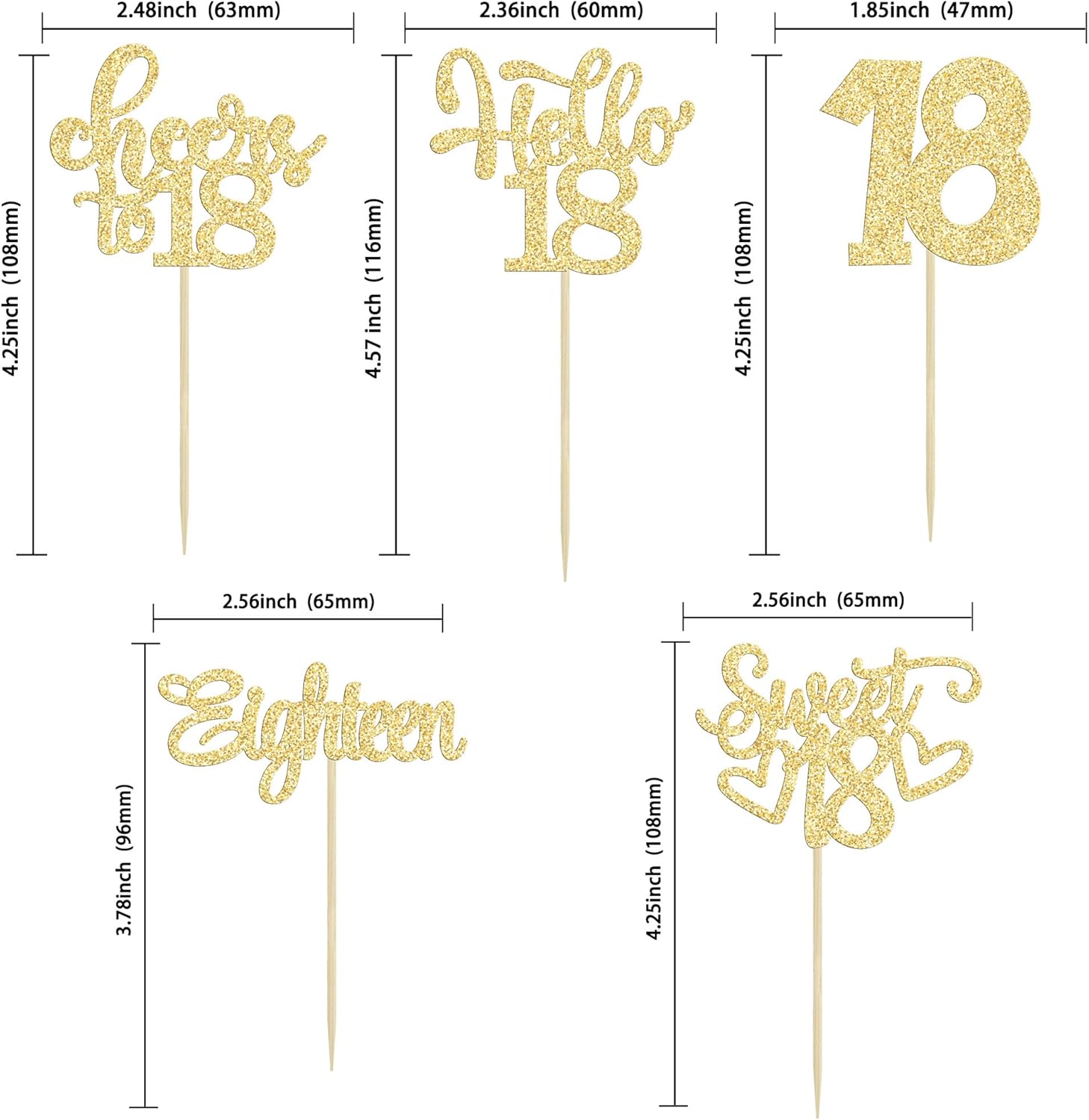 • -Premium Material: These Happy 18th Birthday Cupcake Toppers are made of high quality 300 gram card stock and food-grade toothpick, very safe to put them on cakes, cupcakes, ice cream, fruits, pie, dessert, cheese or any dish and food appetizer you want to decorate.