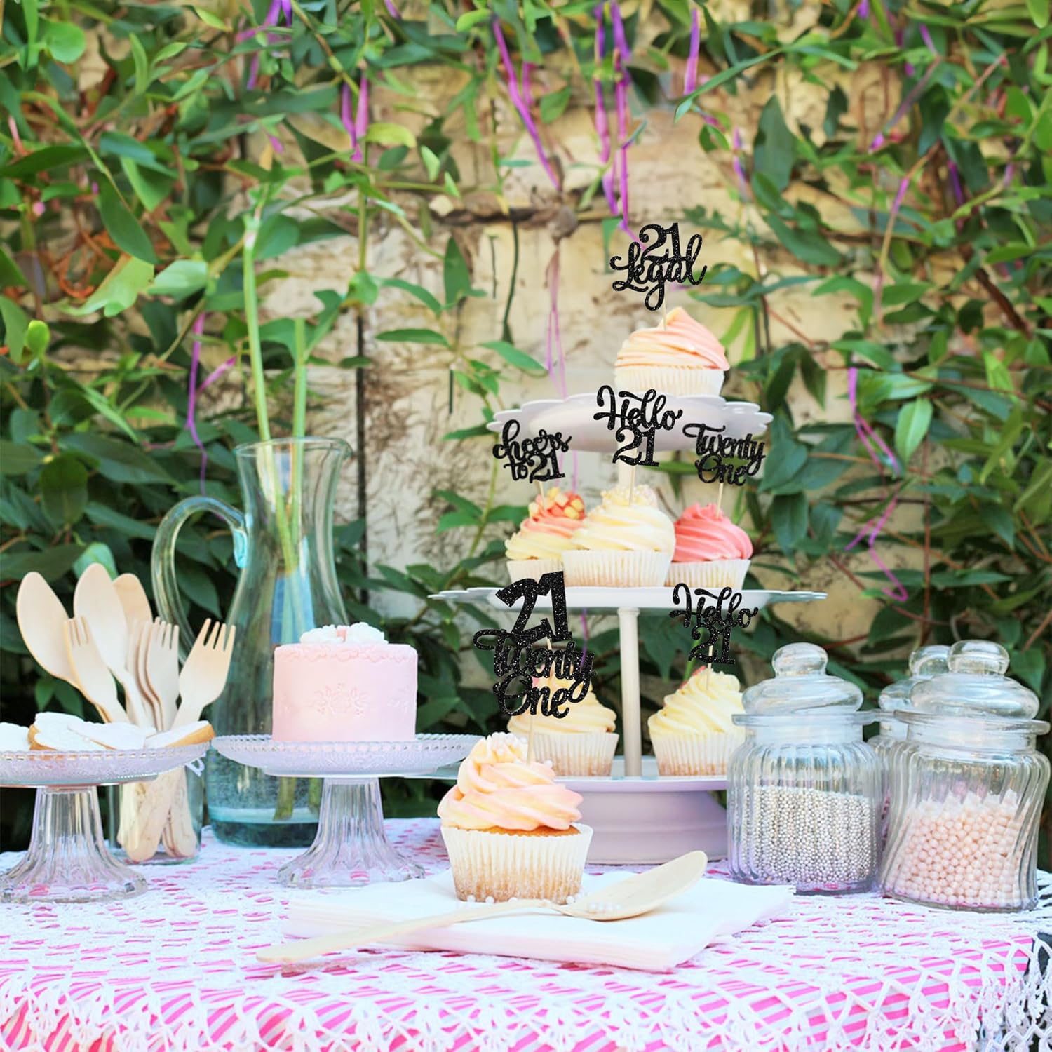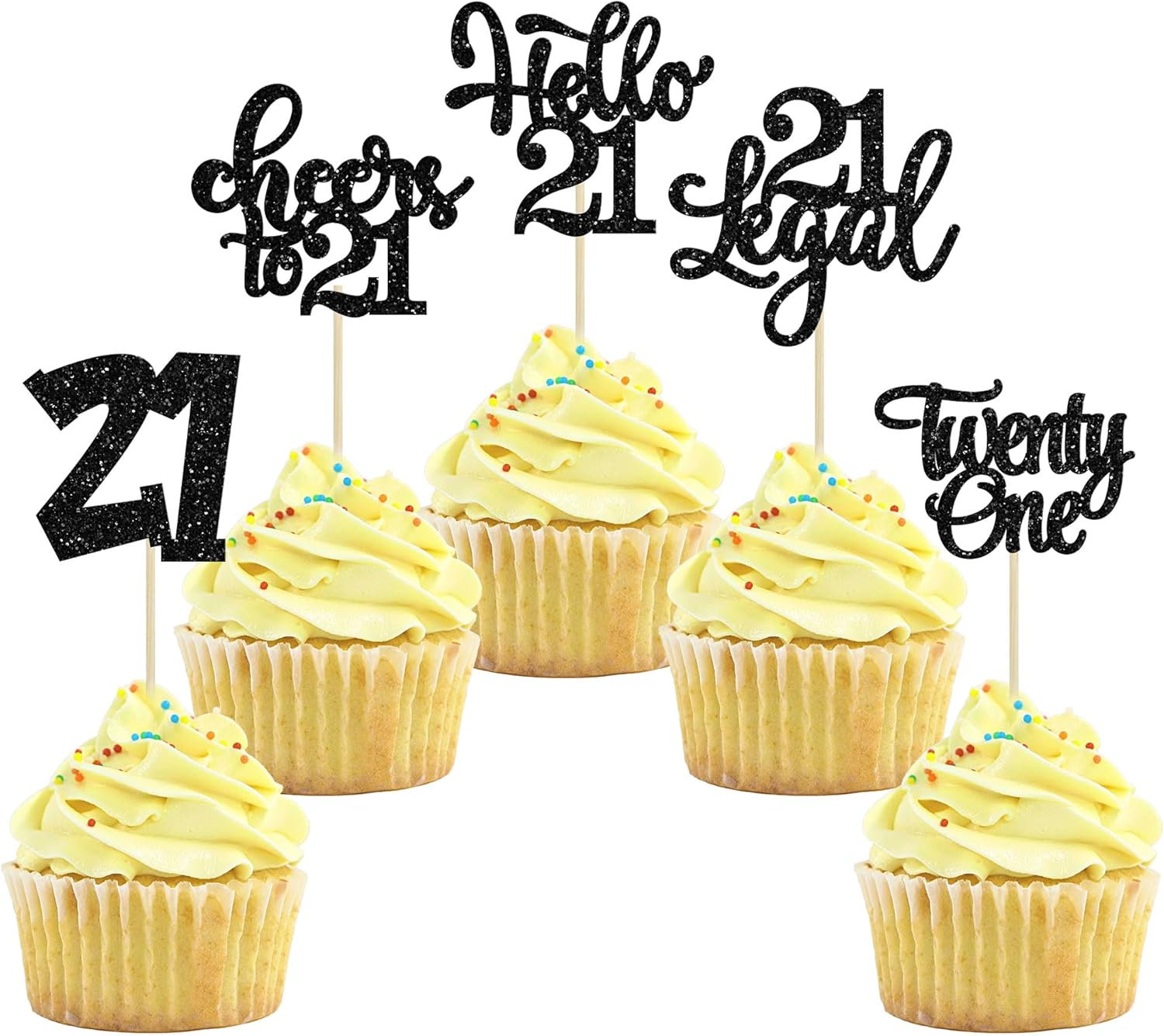 30pcs 21st Birthday Cupcake Toppers - Legal 21st Cupcake Picks - Cheers to 21 Years Old Cake Decorations - Black Glitter