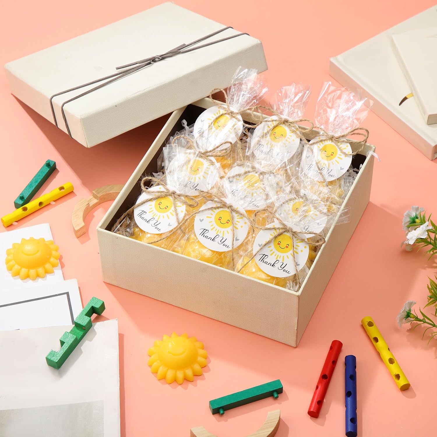 Demissle 20 Pcs Sun Soap Baby Shower Favors for Sunshine Party Here Comes the Son Baby Favors Mini Handmade Soap Gifts with Thank You Card for Guest Gender Reveal Party Decor(Yellow)