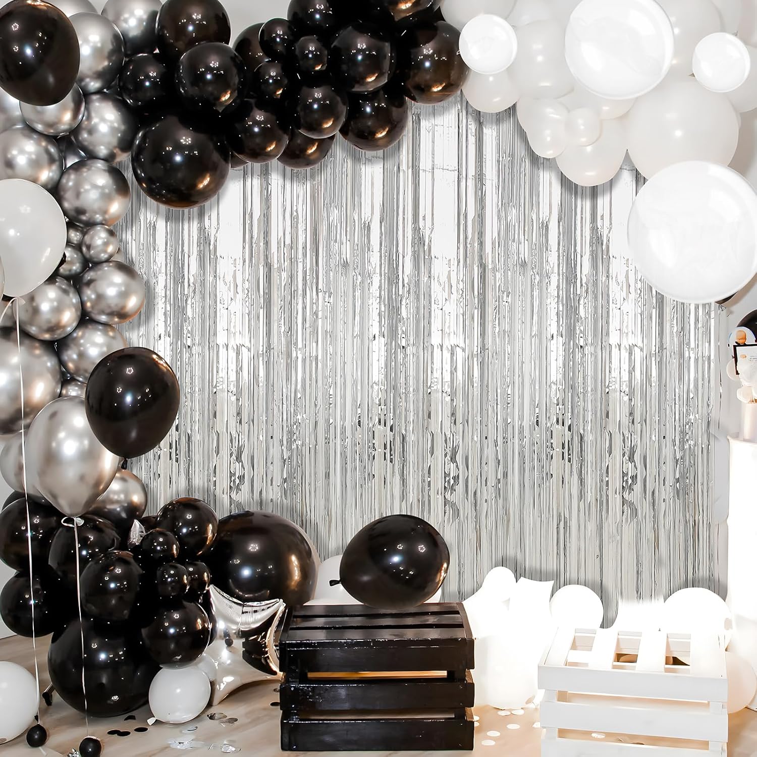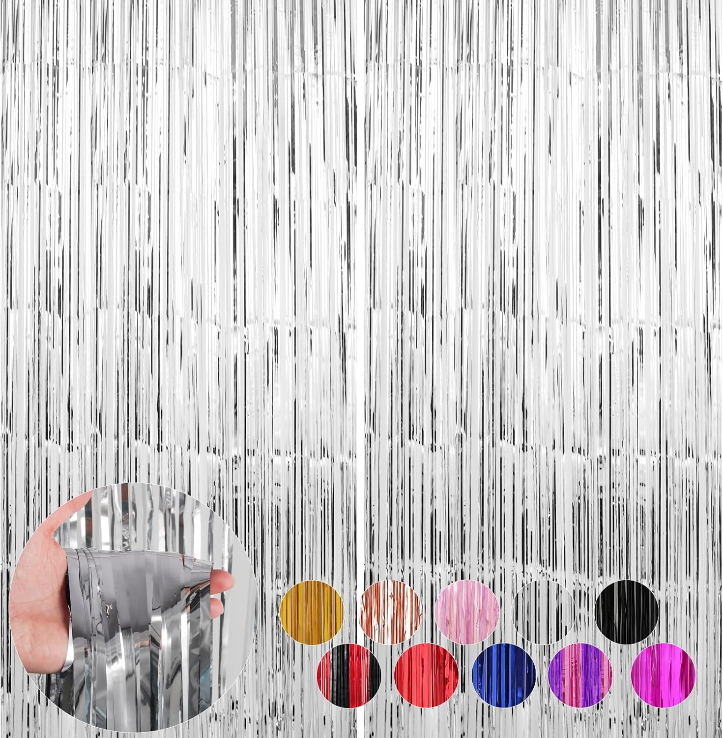 2 Pack Silver Foil Fringe Curtains Streamers Party Decorations 3.3 x 8.2 ft, Tinsel Curtain Fringe Backdrop for Parties, Silver Door Fringe Birthday Streamers, Photo Booth Backdrops, Party Decor