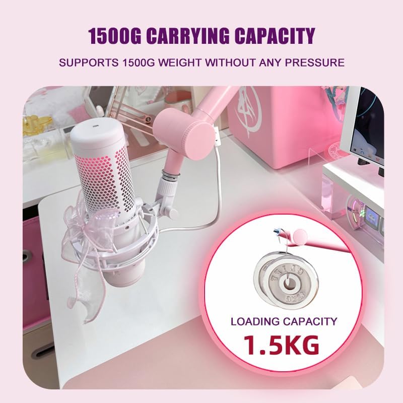 BOMGE Boom Arm Mic Stand - Adjustable Heavy Duty Suspension Boom Scissor Arm Stand with Cable Management Channels, Desk Clamp for Podcasts, Streaming, Gaming, Home Office, Recording (Pink)