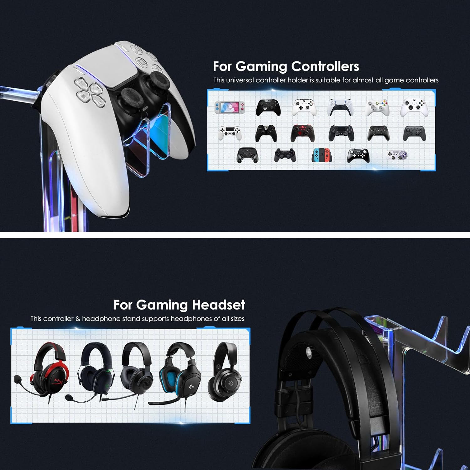 OAPRIRE Controller Holder Headset Stand with Lights, 3 Tier Acrylic Gaming Controller Stand for PS4, PS5, PC, Switch, Universal Design (Black)
