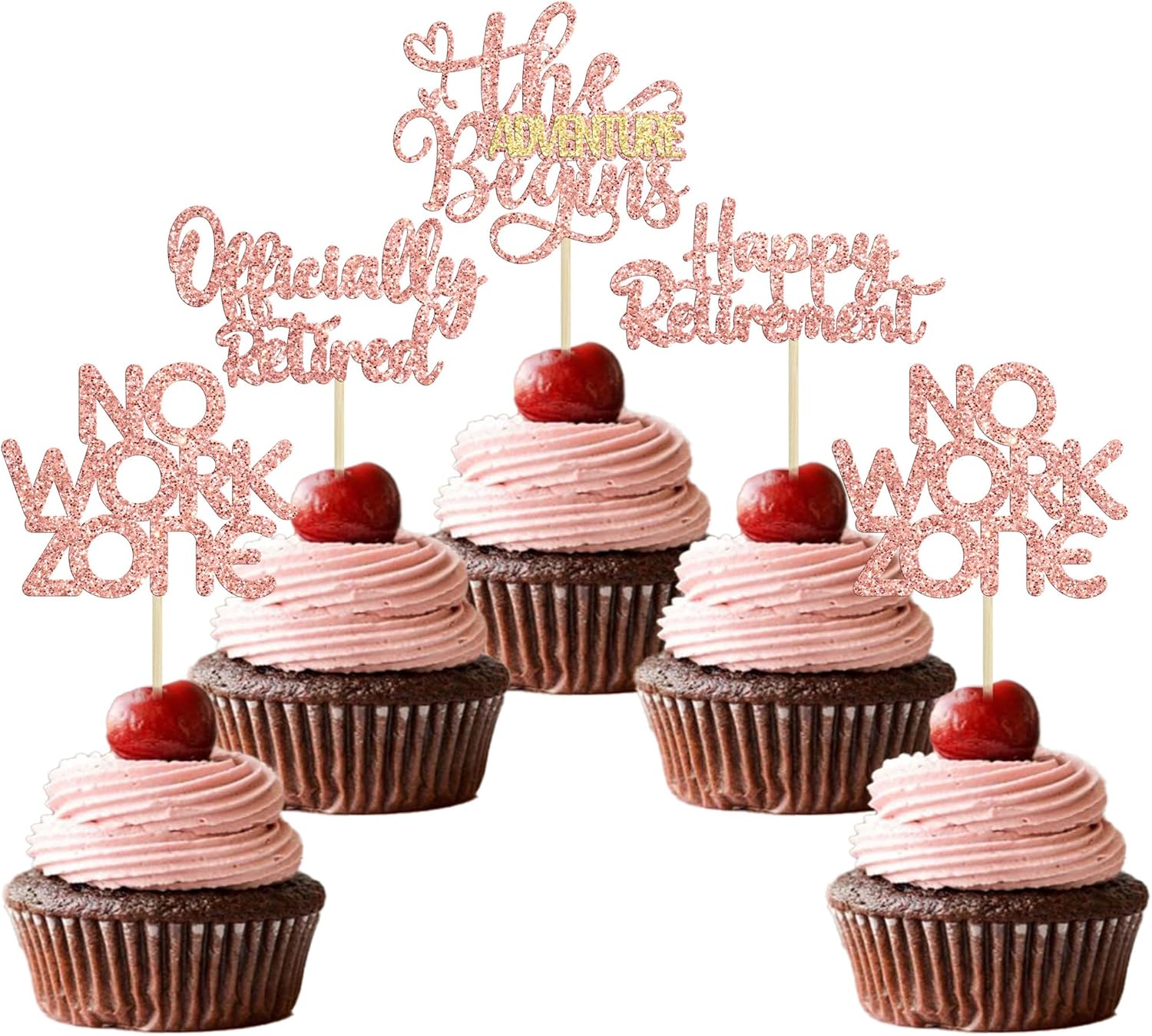 24Pcs Happy Retirement Cupcake Toppers Officially Retired Cake Toppers No Work Zone Adventure Begins Cupcake Picks Retirement Theme Farewell Birthday Party Decorations Supplies Rose Gold