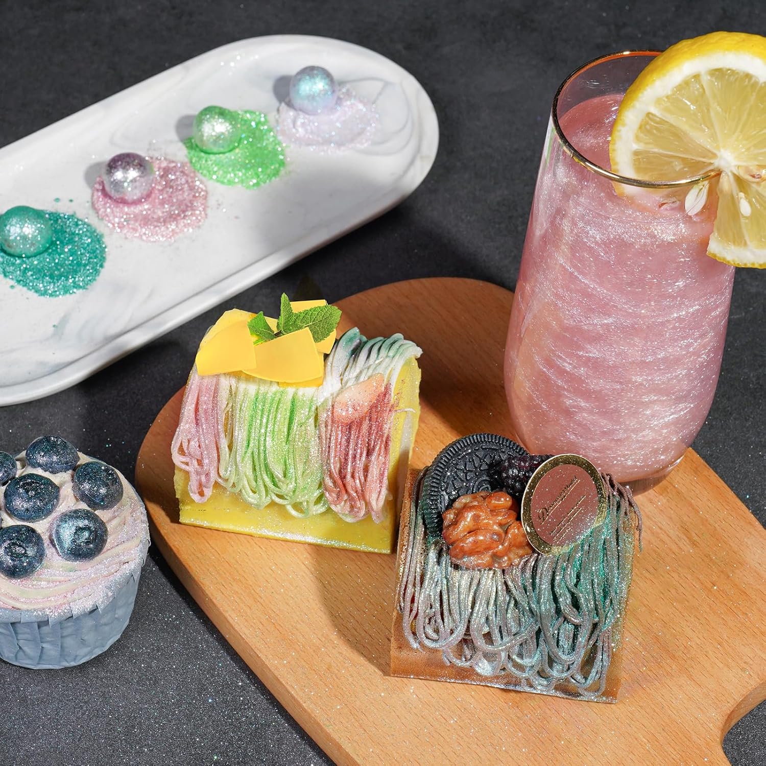 • 🌟【Easy to Use】Specially developed for food decoration and craft industries, this luster dust produces realistic looks by highly pigmented colors with a metallic finish. The pretty fine grain is more convenient for painting. To add glimmer and sparkle to your creations, simply sprinkle or dry brush the luster glitters on them. This product adheres very well to both wet and dry mediums. Attention: Seal and store glitter powder in a cool and dry place after use. Do not expose to excessive heat.